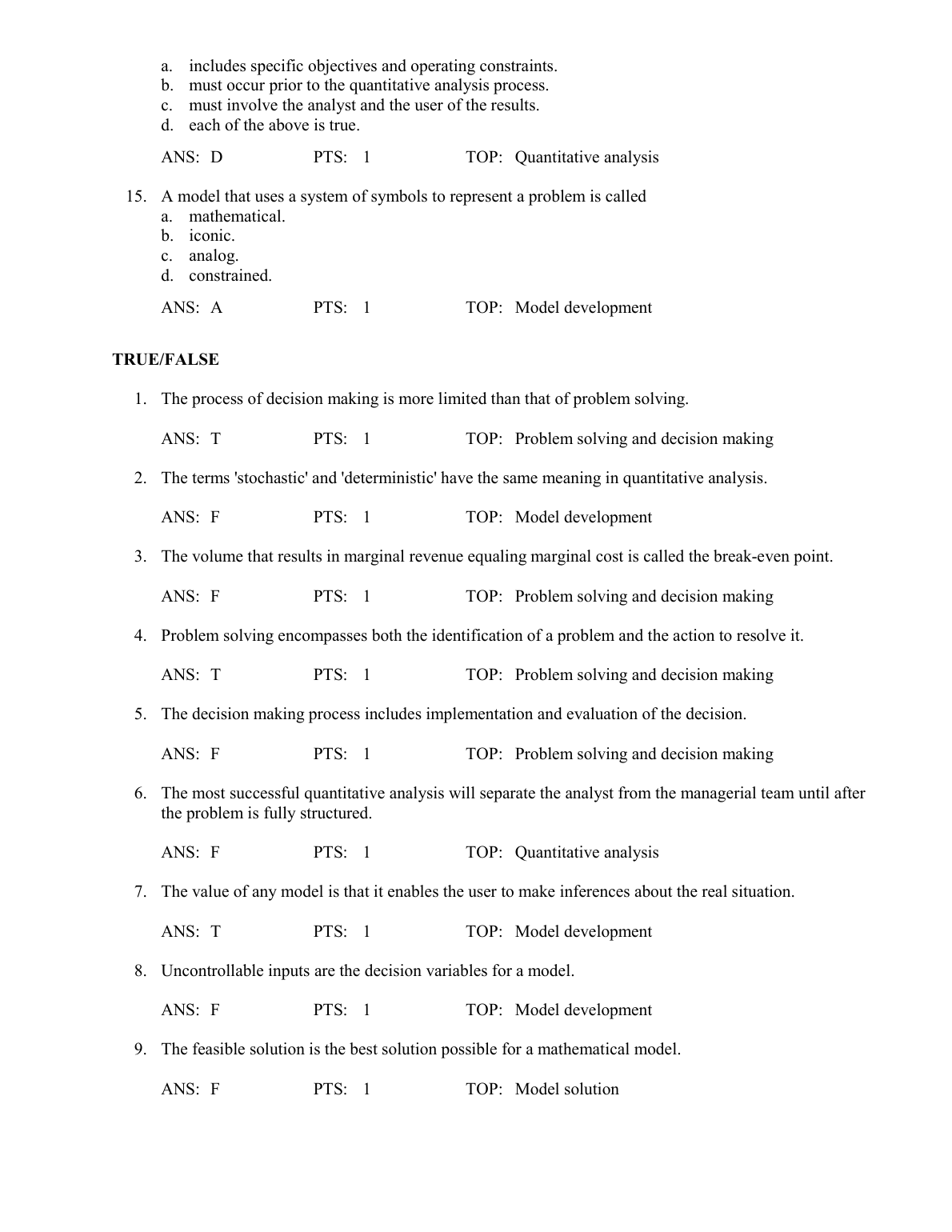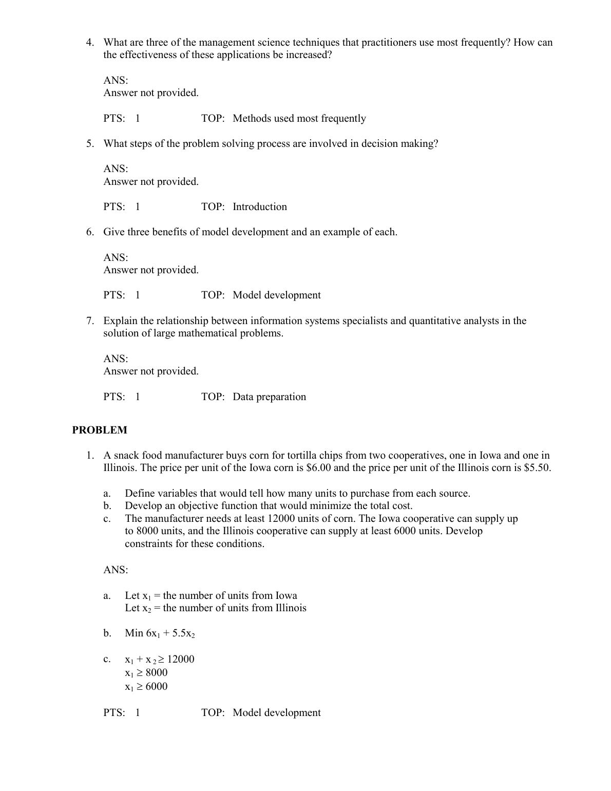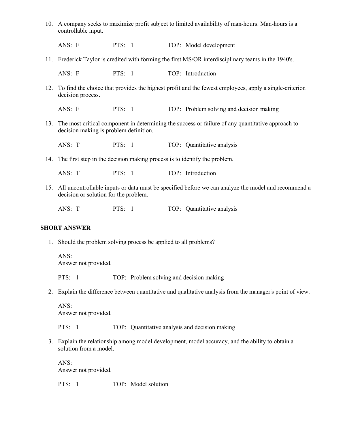 TEST BANK FOR An Introduction To Management Science Quantitative Approaches to Decision Making 12th Edition BY Anderson Sweeney