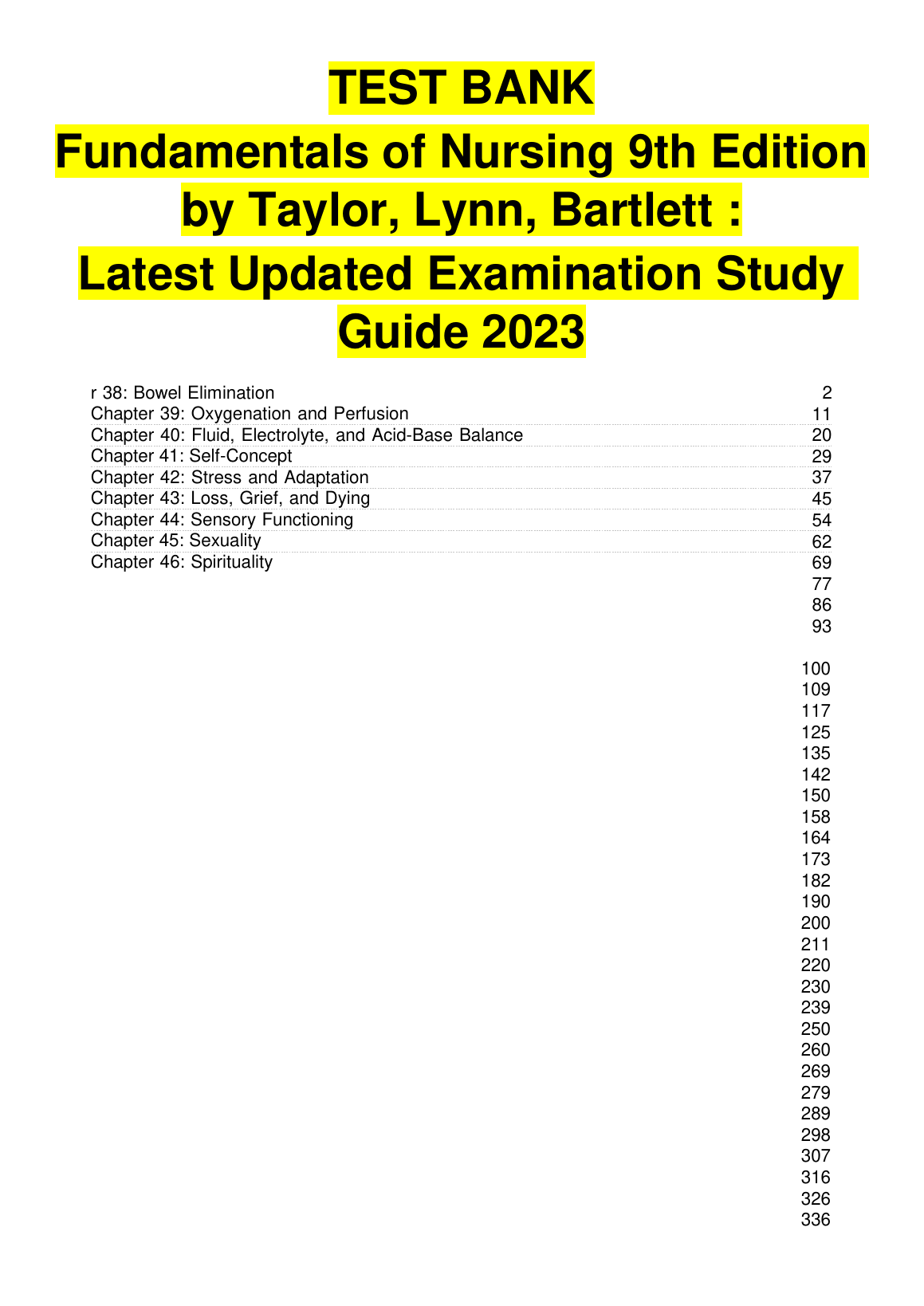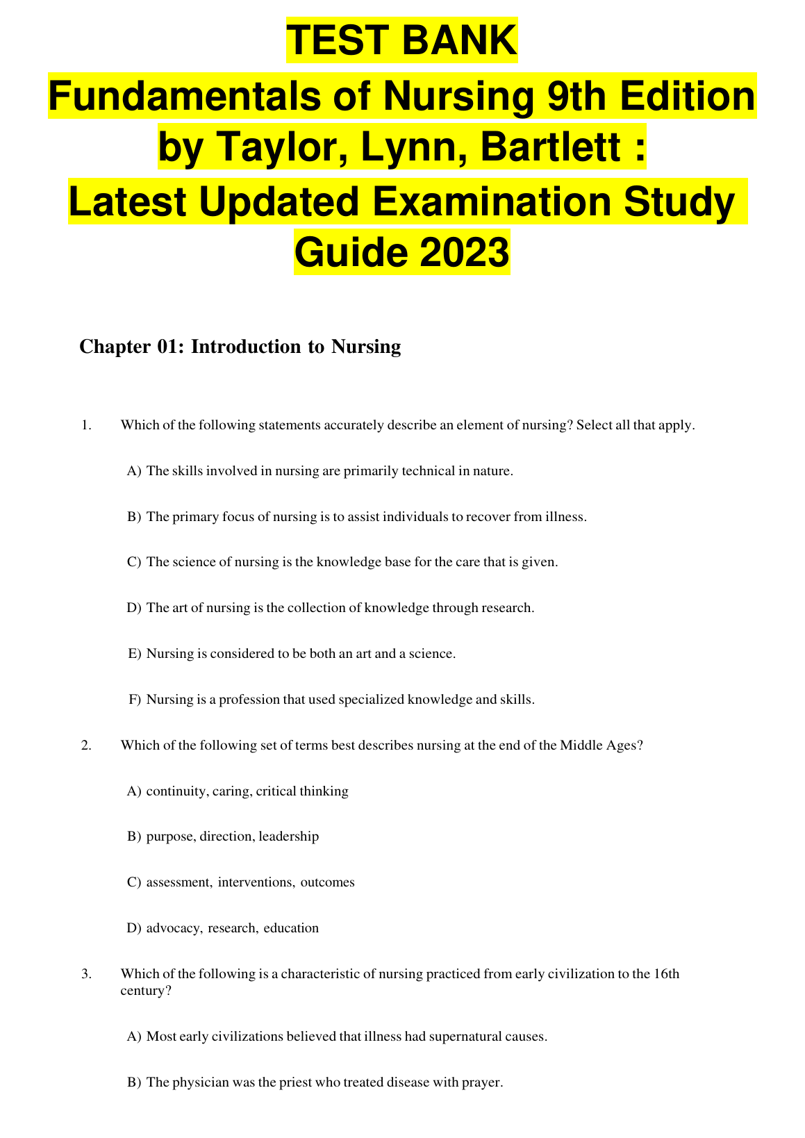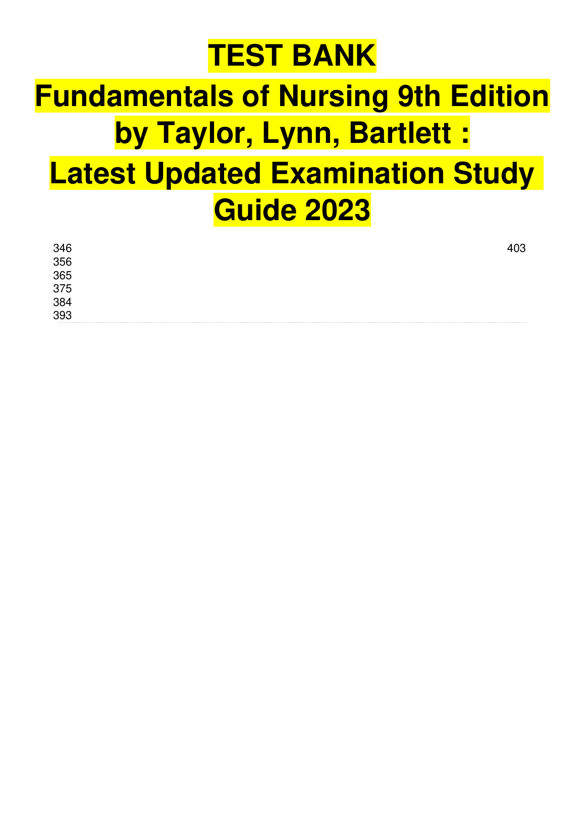 TEST BANK Fundamentals of Nursing 9th Edition by Taylor, Lynn, Bartlett : Latest Updated Examination Study Guide 2023. DOWNLOAD on www.hackedexams.com INSTANTLY.