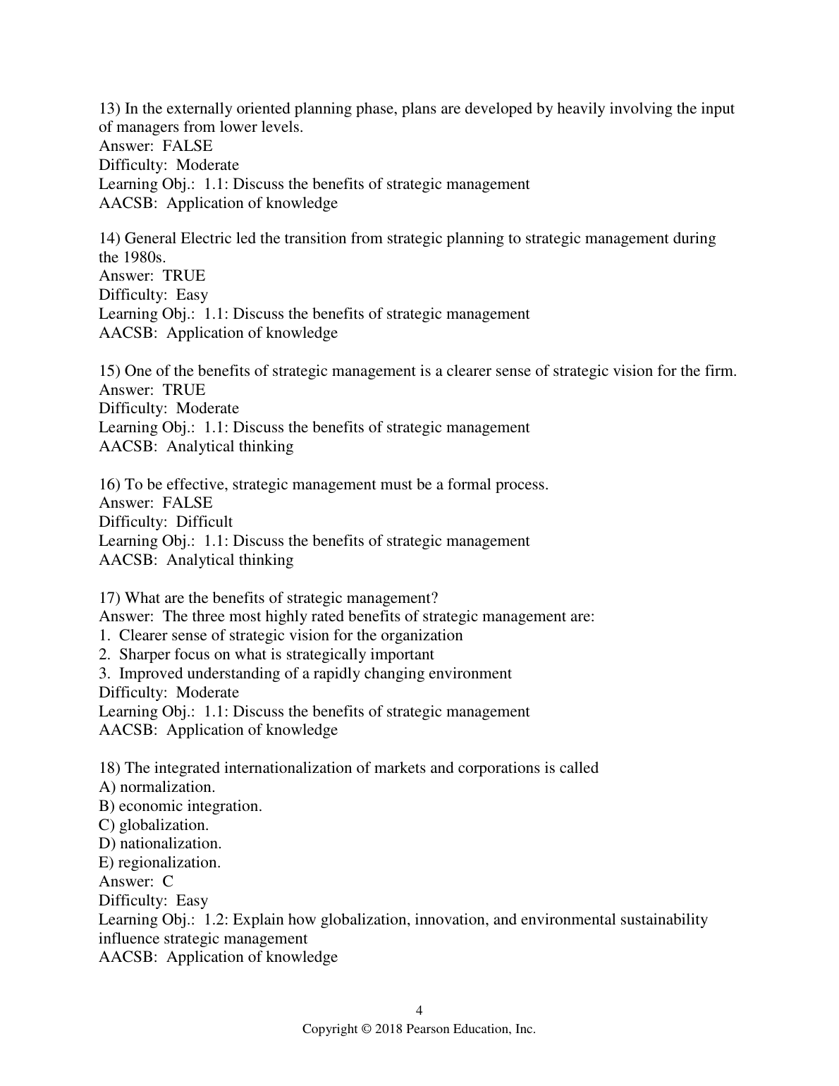 TEST BANK FOR Concepts in Strategic Management and Business Policy Globalization, Innovation and Sustainability, 15TH EDITION BY Wheelen, Hunger