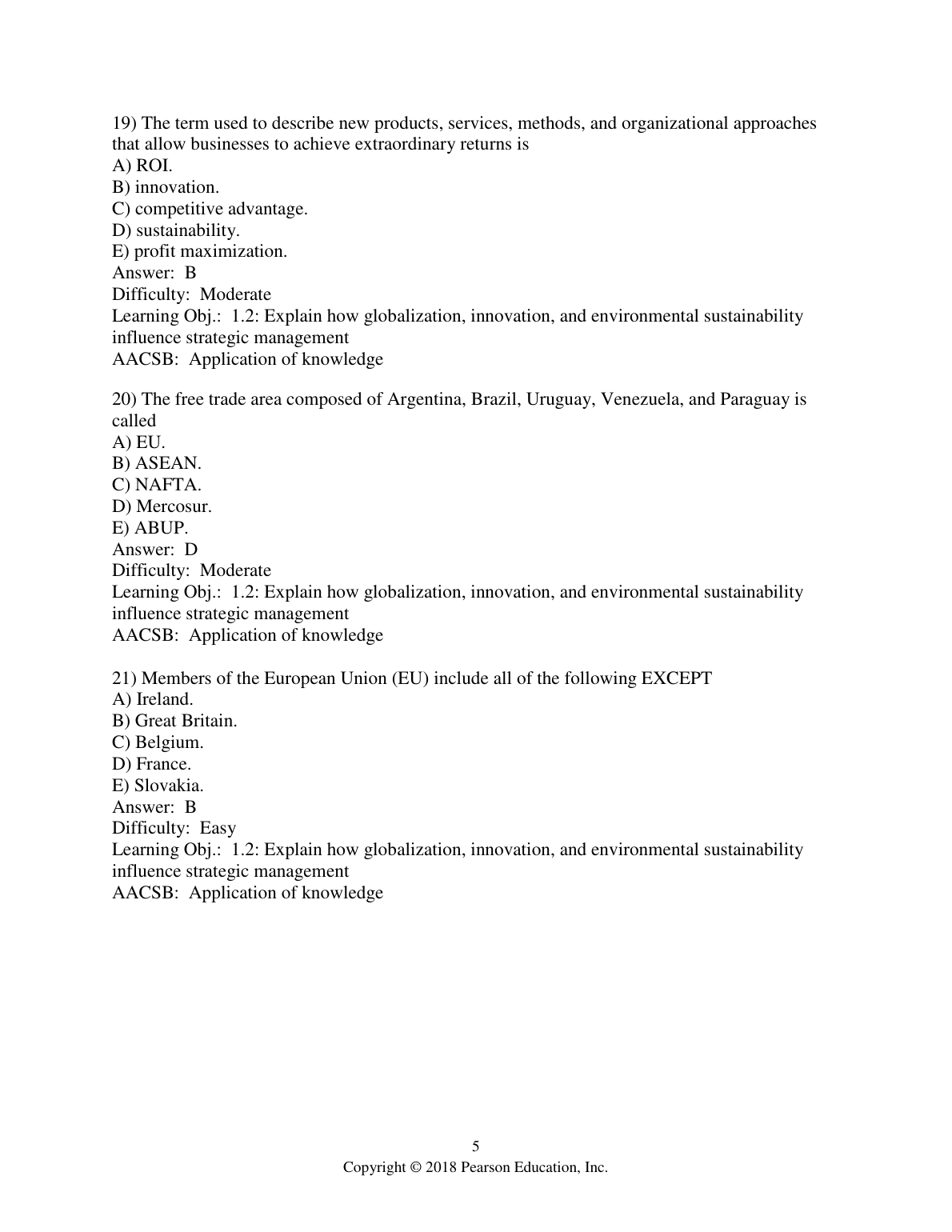 TEST BANK FOR Concepts in Strategic Management and Business Policy Globalization, Innovation and Sustainability, 15TH EDITION BY Wheelen, Hunger. DOWNLOAD on www.hackedexams.com INSTANTLY.
