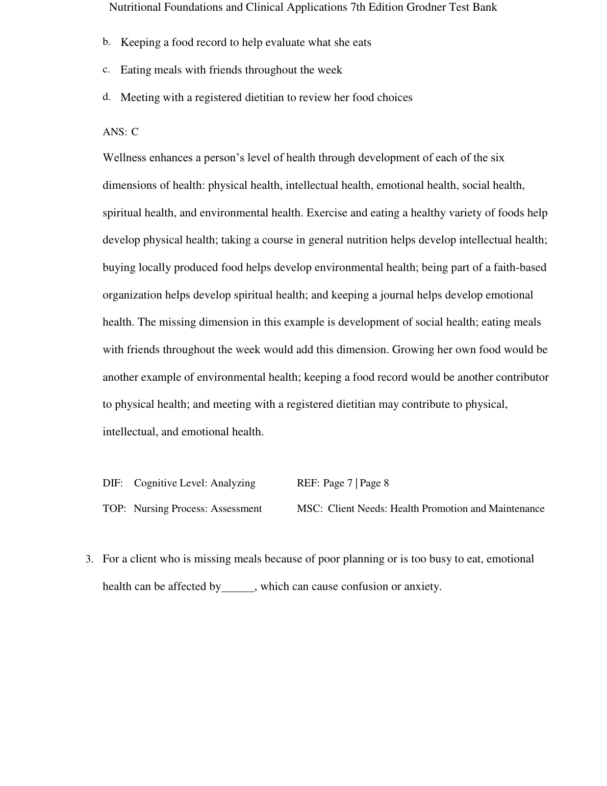 TEST BANK NUTRITIONAL FOUNDATIONS AND CLINICAL APPLICATIONS 7TH EDITION BY GRODNER Test Bank Questions and Complete Solutions to all Chapters.