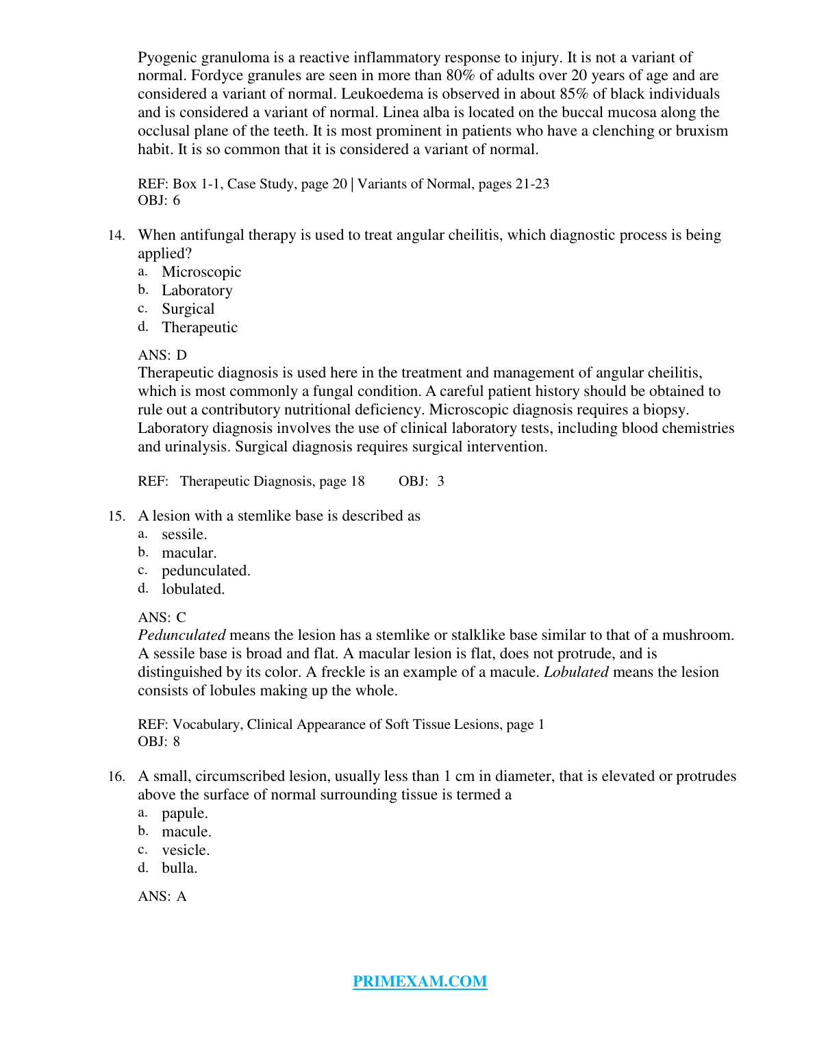 TEST BANK: Ibsen: Oral Pathology for the Dental Hygienist, 7th Edition
