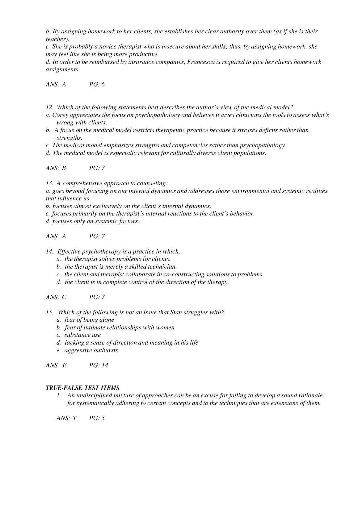 Theory and Practice of Counseling and Psychotherapy 10th Edition Test Bank BY Corey