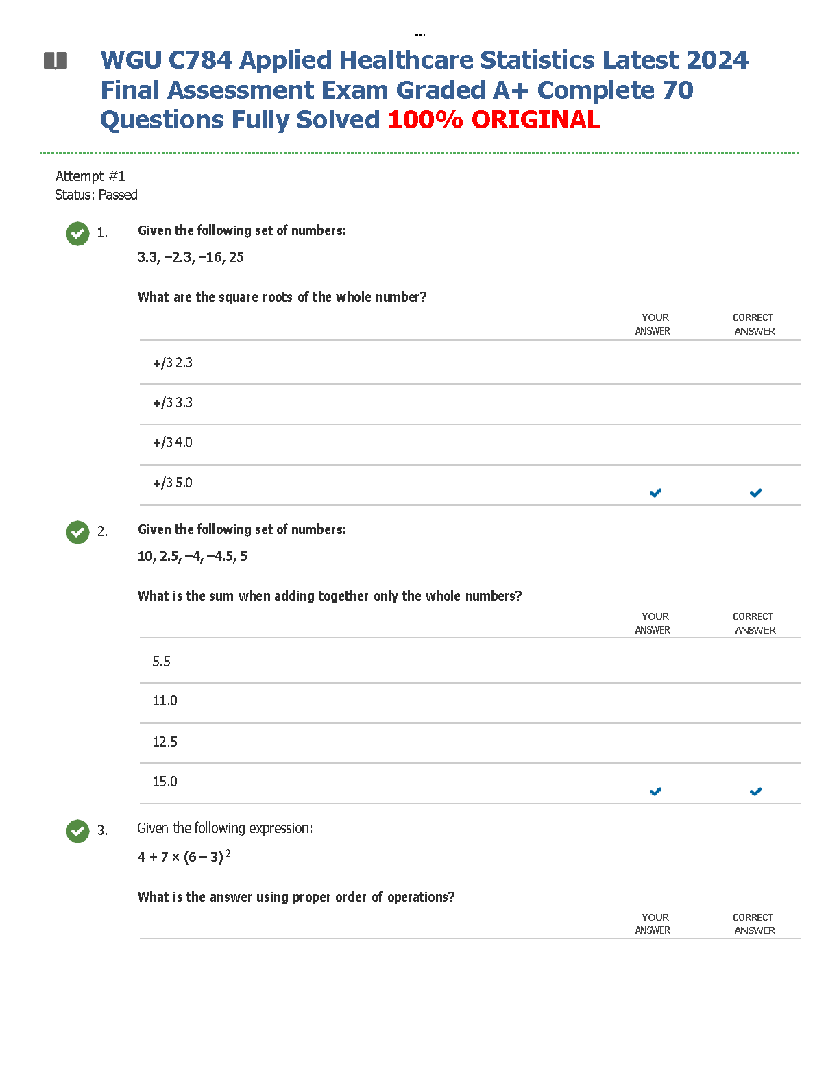 Ace your WGU C784 Applied Healthcare Statistics final exam with this comprehensive study guide. This resource includes 70 complete, graded A+ solutions to the latest 2024/2025 exam questions, helping you pass on your first attempt and avoid resits. 100% original content for guaranteed success.
