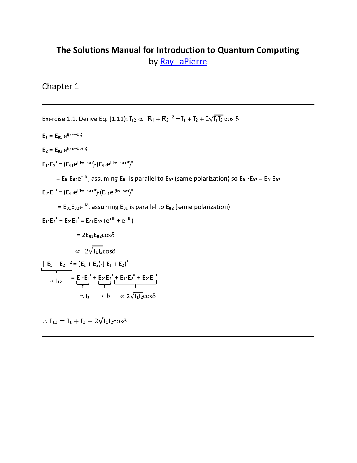 Solutions Manual for Introduction to Quantum Computing by Ray LaPierre
