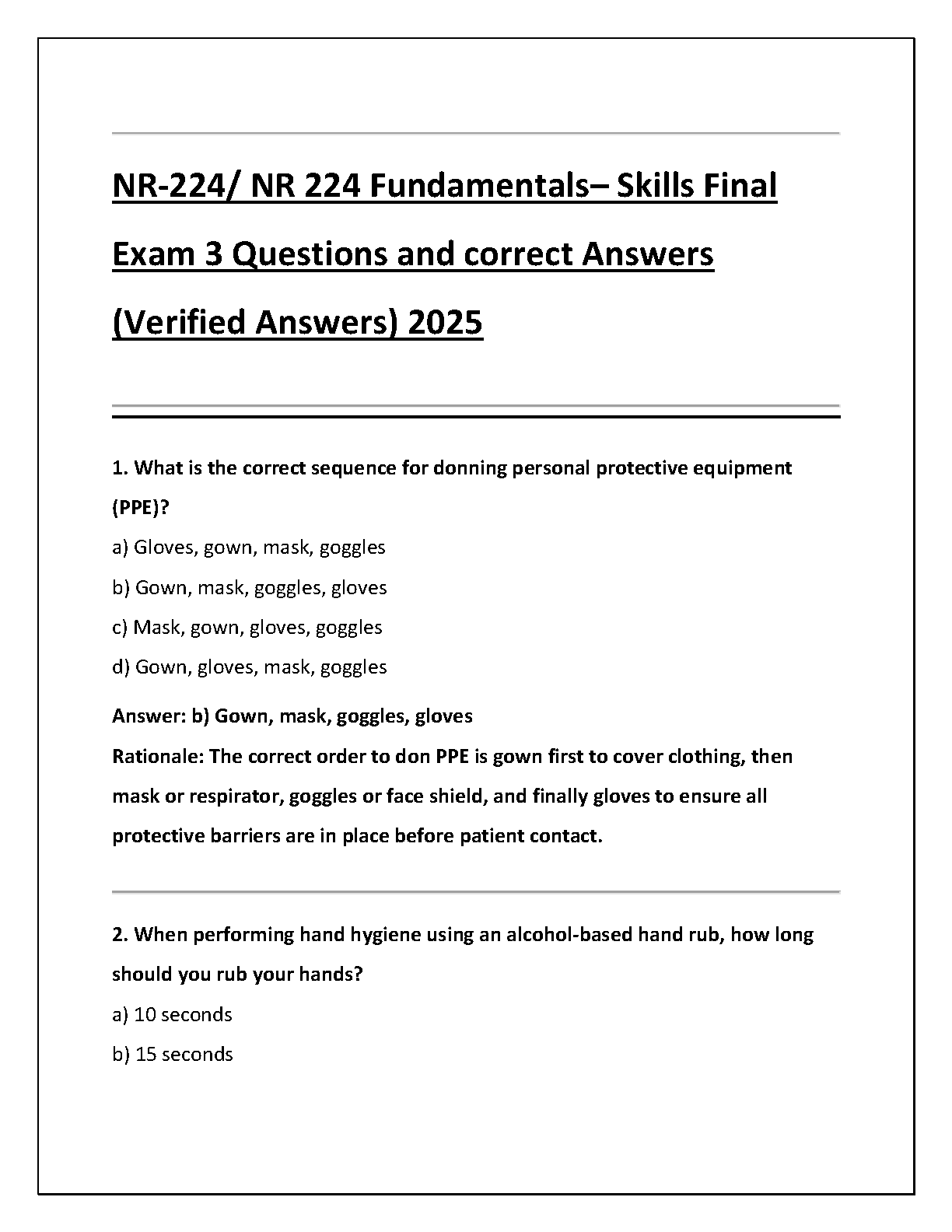 NR-224/NR 224 Fundamentals Skills Final Exam 3: Questions and Verified Answers (2025 Edition)
