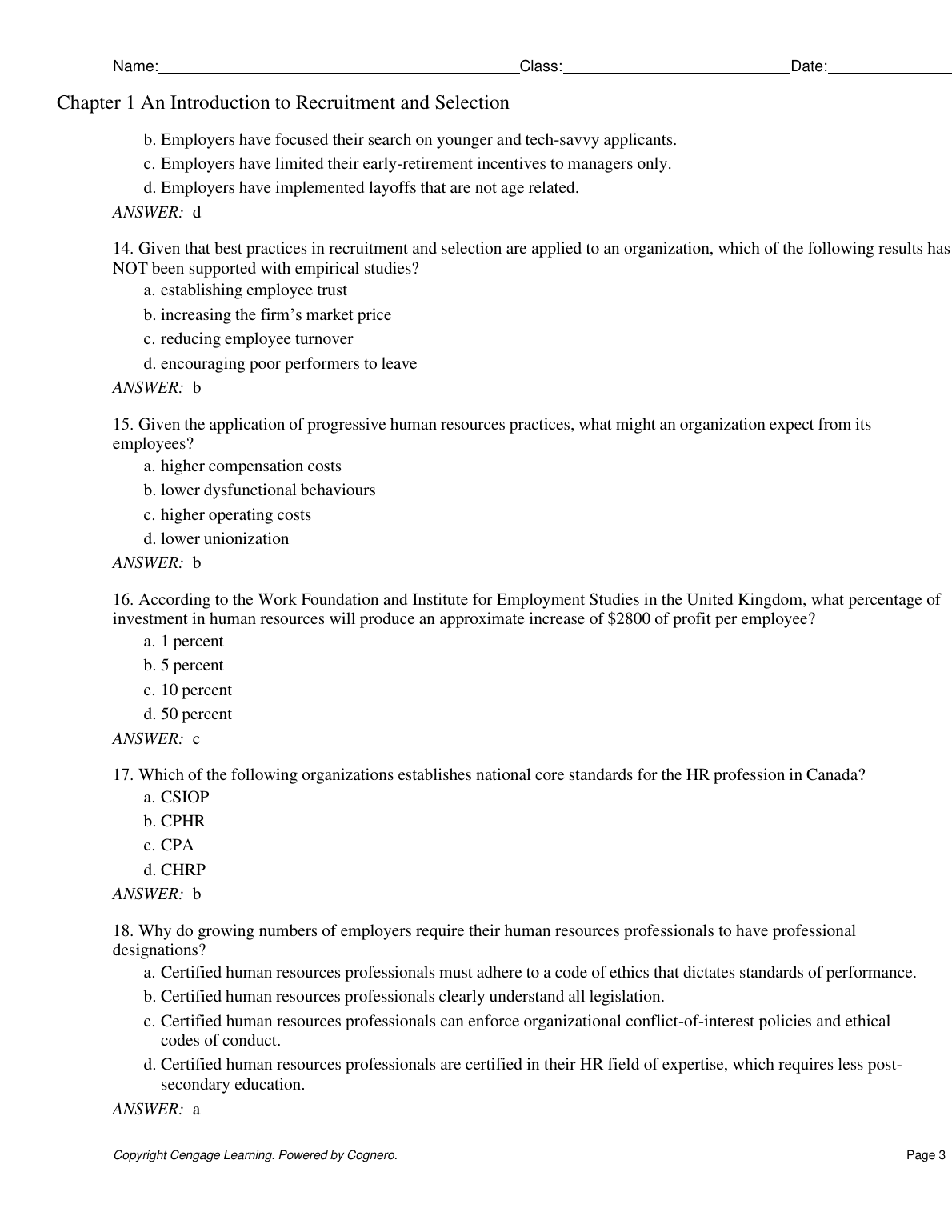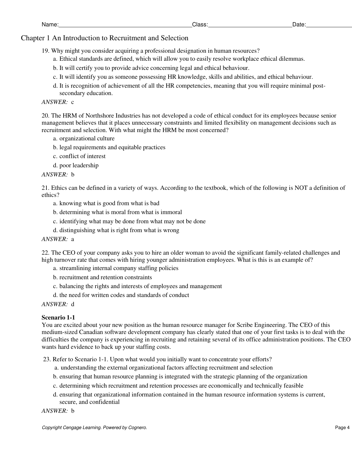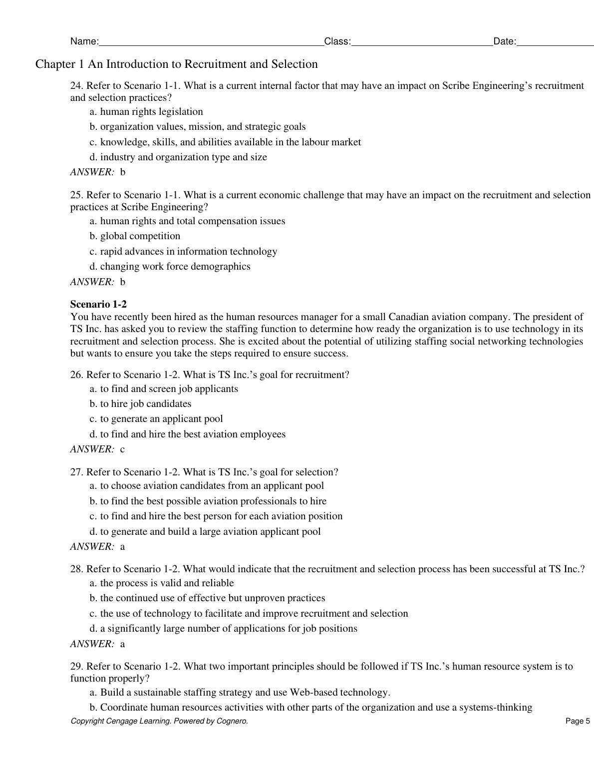 TEST BANK FOR Recruitment and Selection in Canada 7th Edition BY CATANO, WIESNER, HACKETT