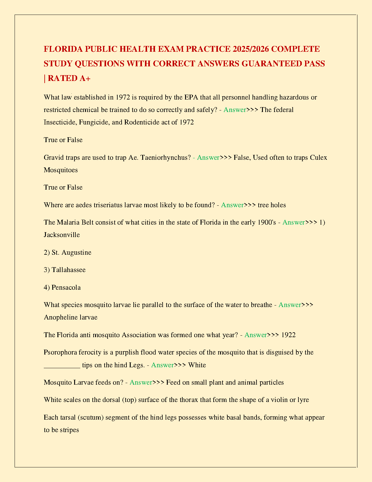 Florida Public Health Exam Practice 2025/2026: Complete Study Questions with Correct Answers for Guaranteed Pass