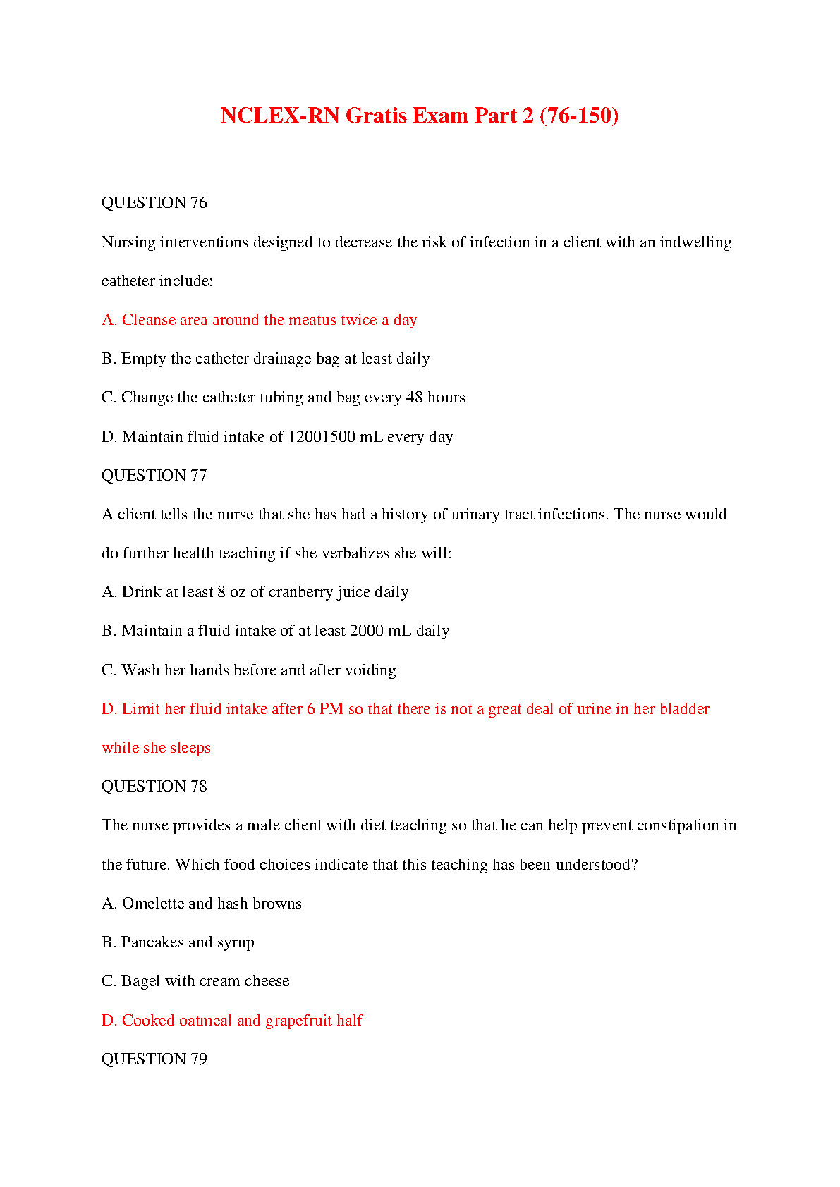 NCLEX-RN Gratis Exam Part 2 (76-150): Questions and Answers for Nursing Students