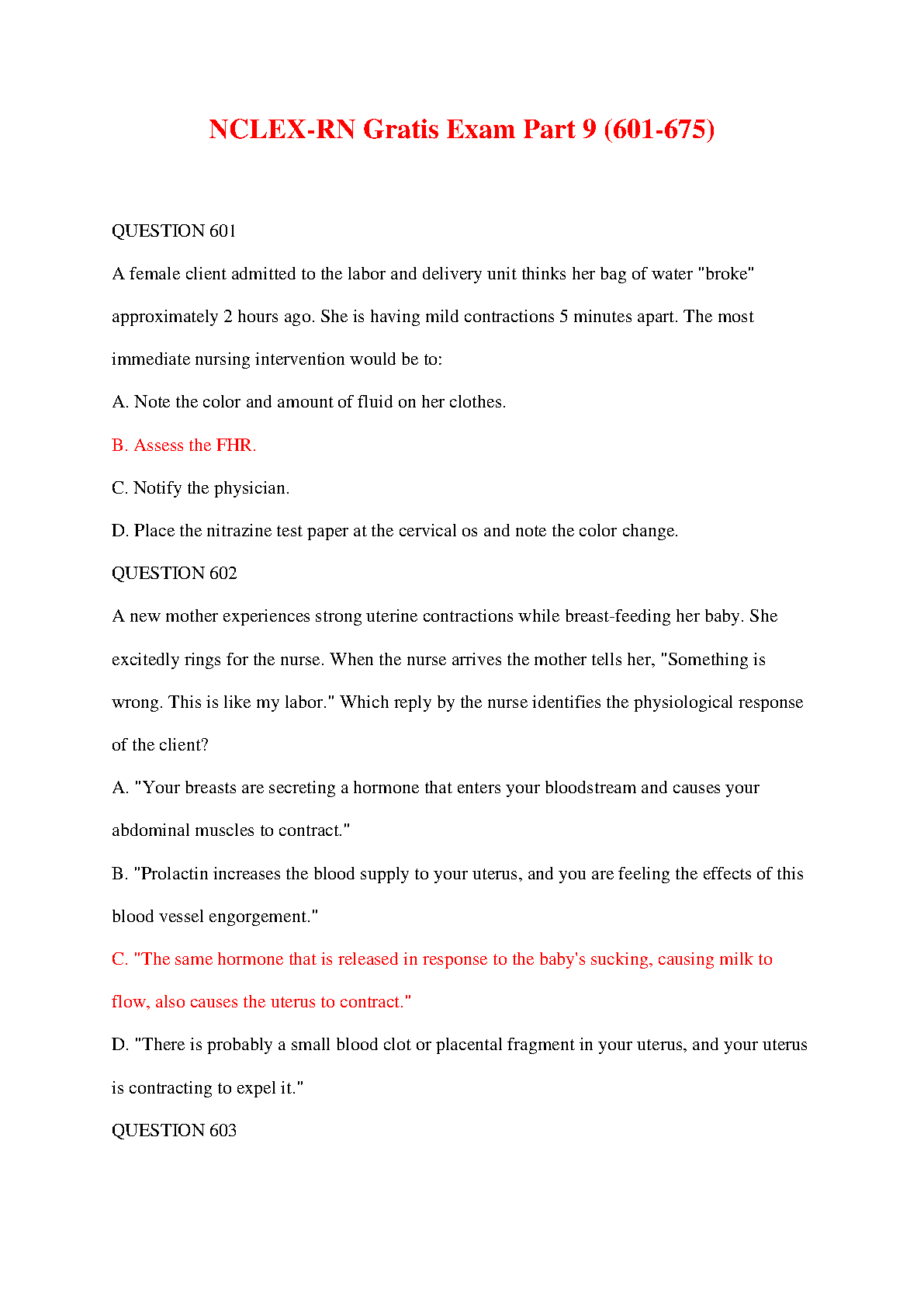 NCLEX-RN Gratis Exam Part 9 (601-675): 2024-2025 Edition - Ace Your Nursing Exams!