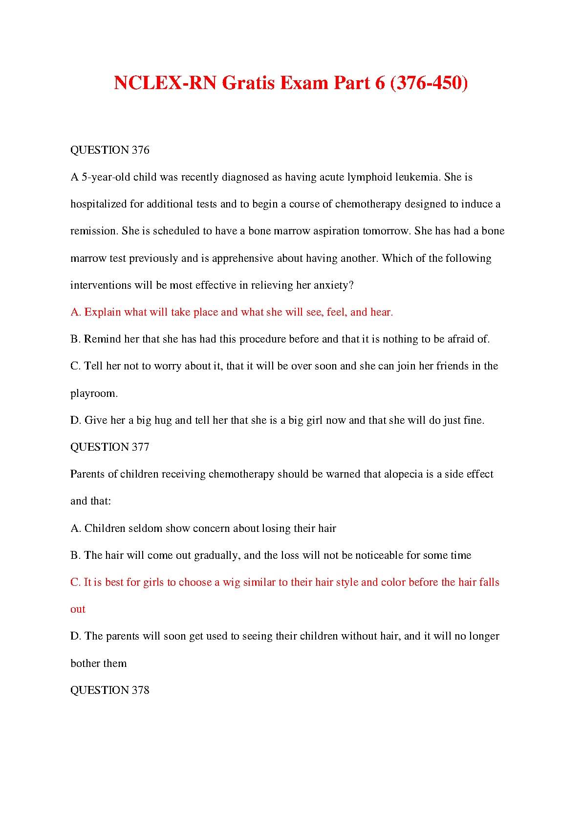 Conquer the NCLEX-RN exam with confidence! This comprehensive NCLEX-RN practice exam, covering questions 376-450, is designed to help you achieve exam success on your first attempt. Sharpen your critical thinking and clinical judgment skills with challenging questions and detailed explanations.