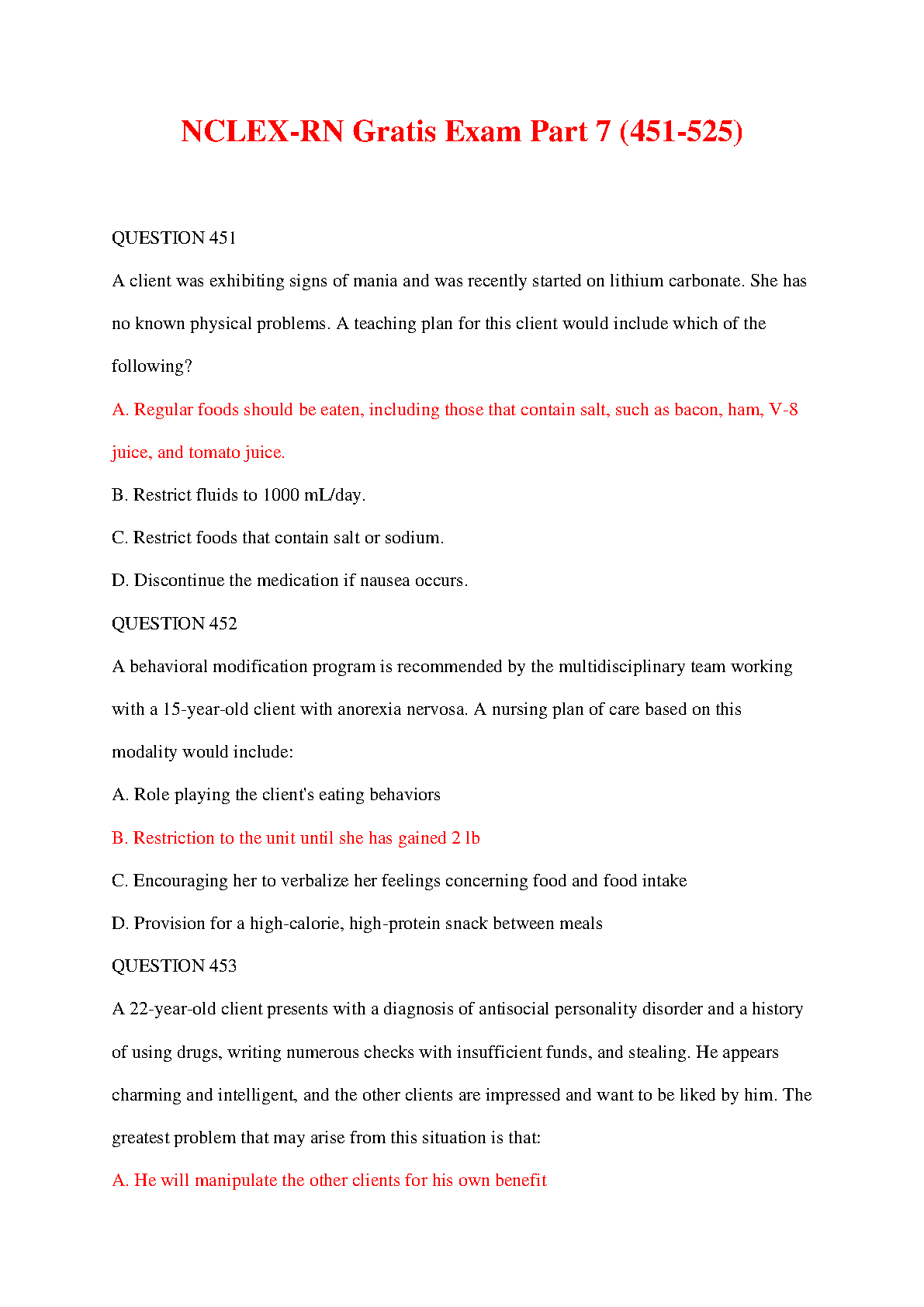 NCLEX-RN Gratis Exam Part 7 (451-525) Practice Questions for 2024-2025