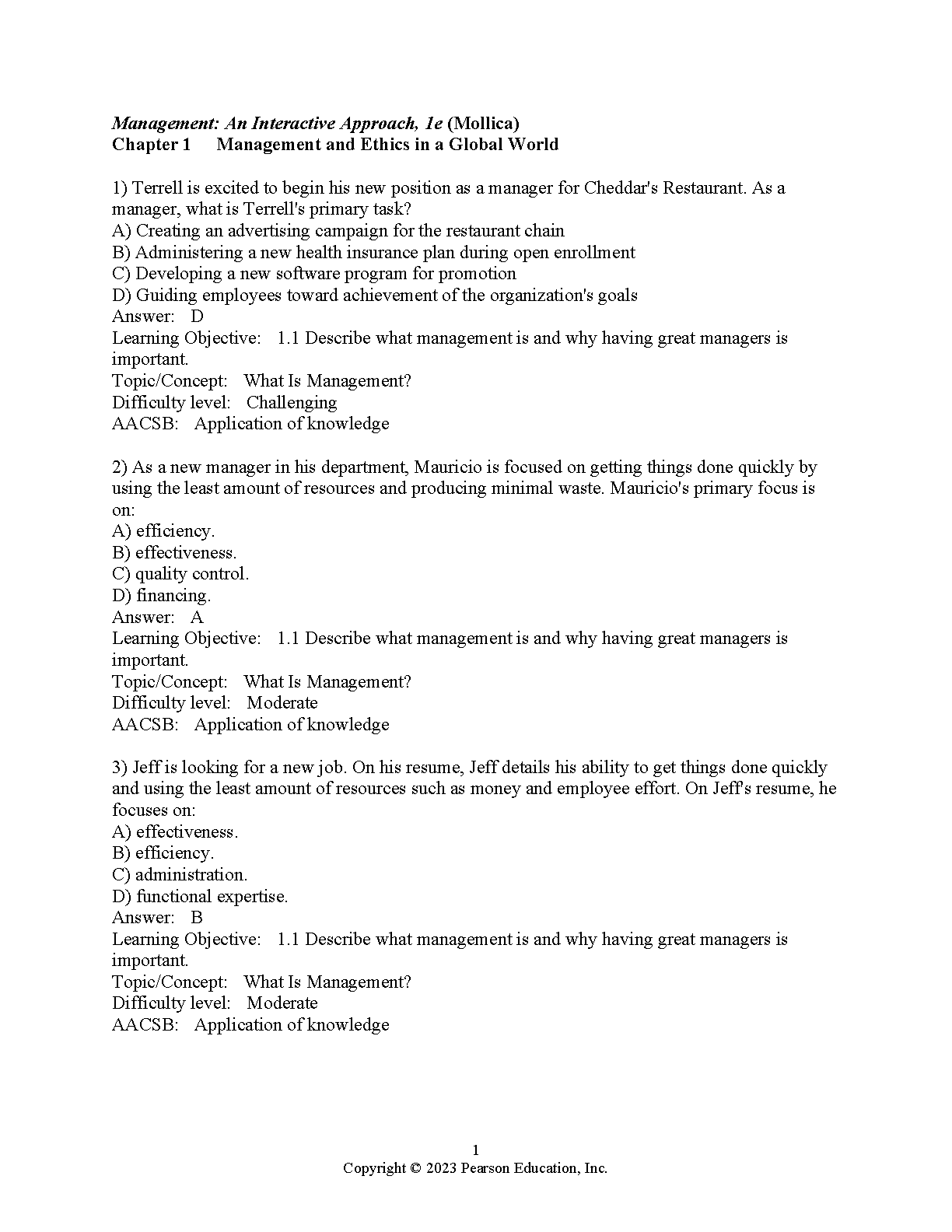 Management: An Interactive Approach Test Bank - Kelly Mollica & Nicole M. Coomber