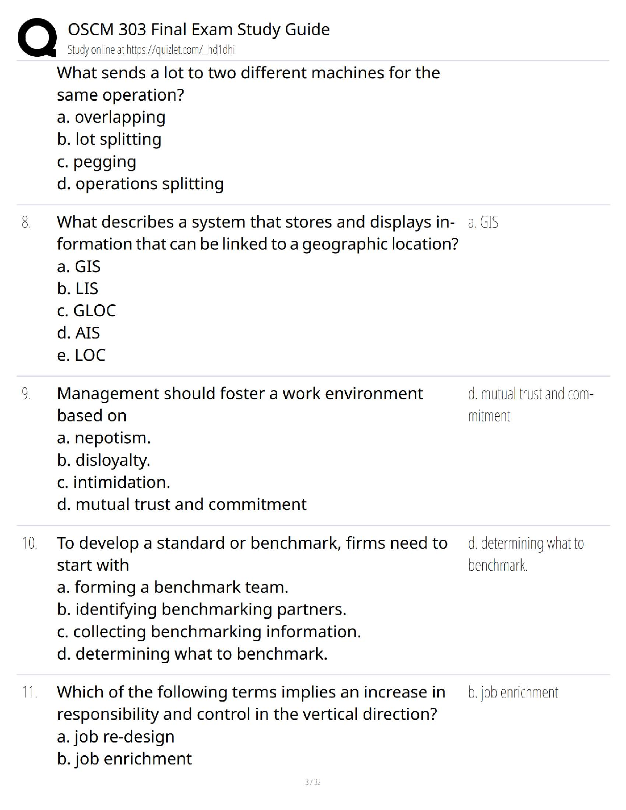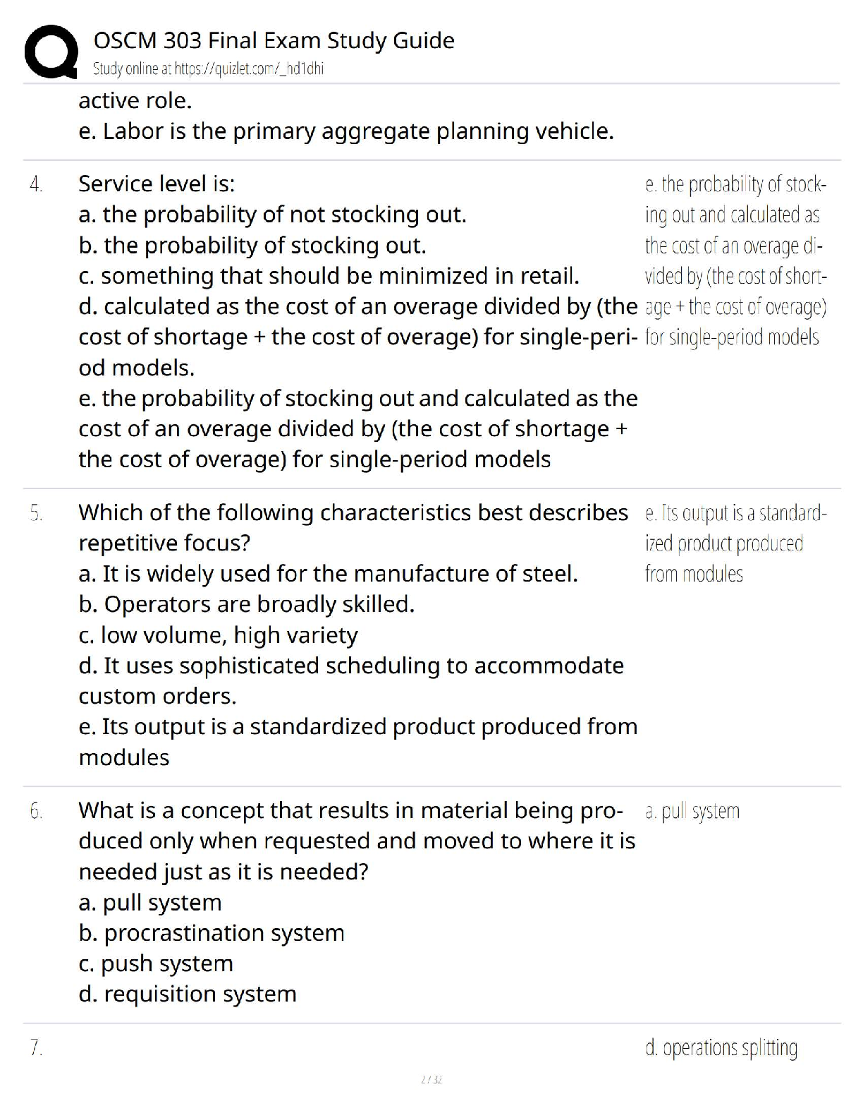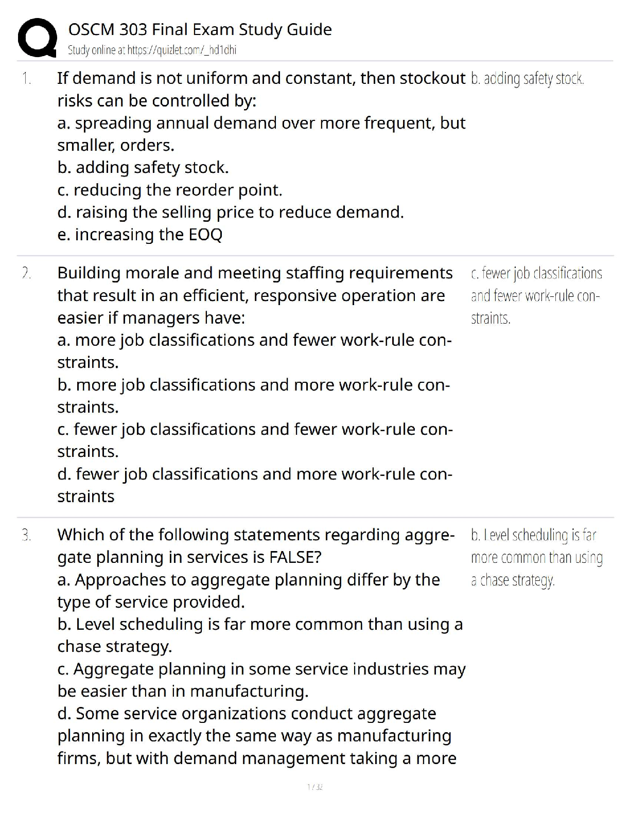 OSCM 303 Final Exam Study Guide 2024-2025: Ace Your Exam on the First Attempt