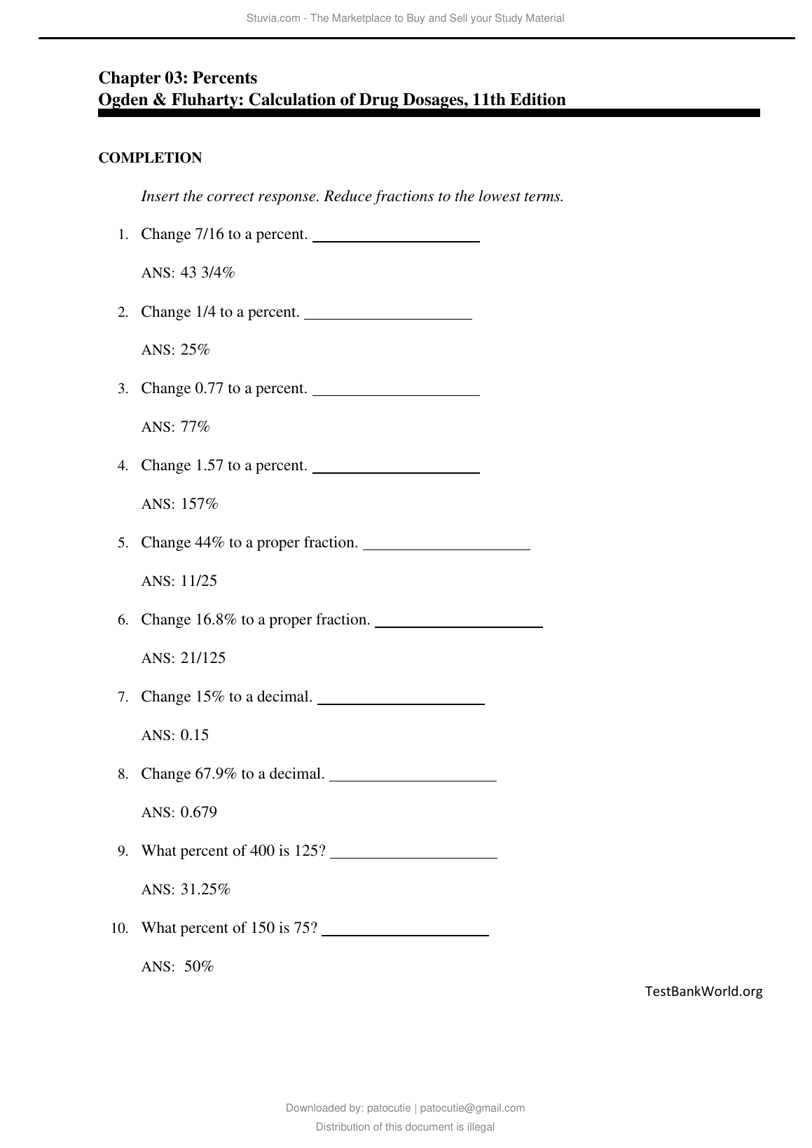 Ogden & Fluharty: Calculation of Drug Dosages, 11th Edition TEST BANK. DOWNLOAD on www.hackedexams.com INSTANTLY.
