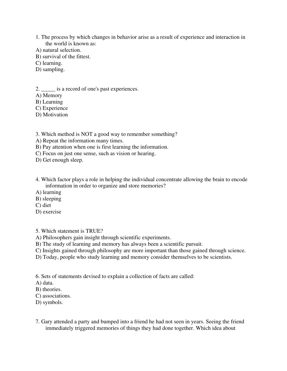 Test Bank for Learning and Memory, 3RD EDITION BY Mark Gluck, Eduardo Mercado, Catherine Myers (All Chapters Answers at the end of each Chapter). DOWNLOAD on www.hackedexams.com INSTANTLY.
