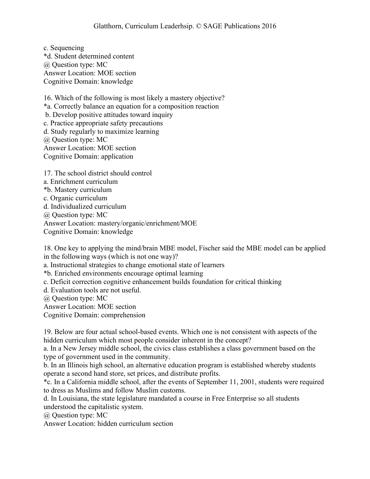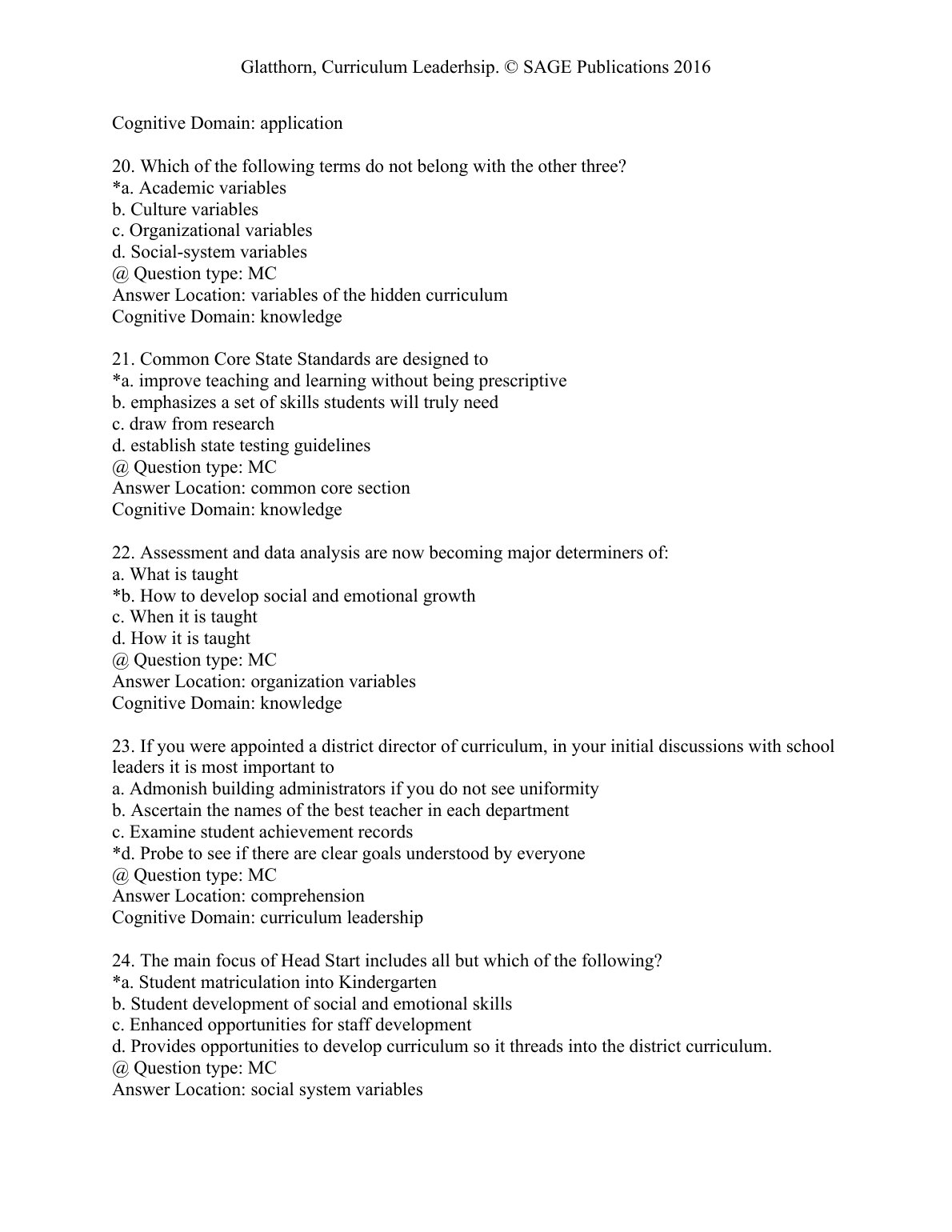 Curriculum Leadership Strategies for Development and Implementation 4TH EDITION BY Allan Glatthorn Floyd Boschee Bruce Whitehead Bonni Boschee TEST BANK. DOWNLOAD on www.hackedexams.com INSTANTLY.