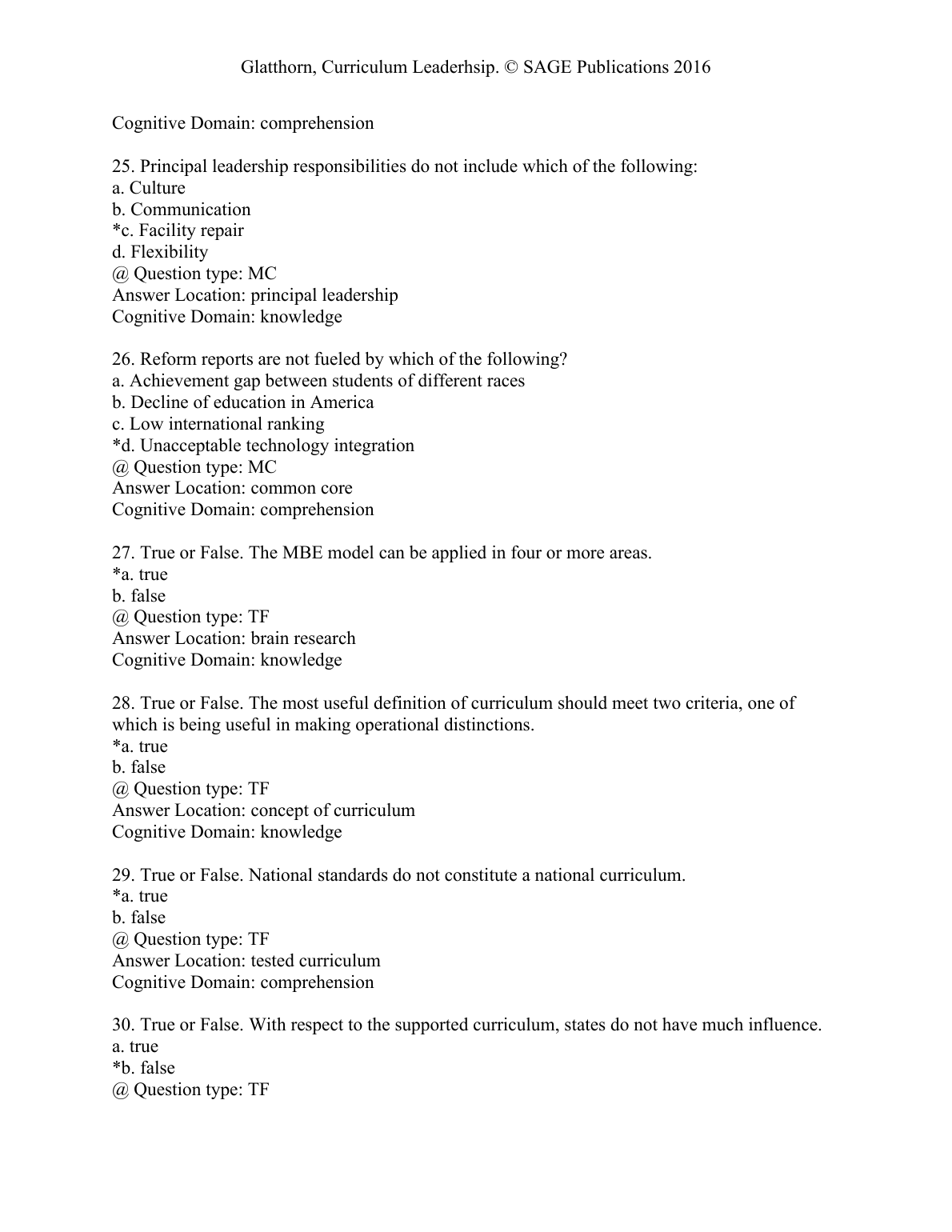 Curriculum Leadership Strategies for Development and Implementation 4TH EDITION BY Allan Glatthorn Floyd Boschee Bruce Whitehead Bonni Boschee TEST BANK