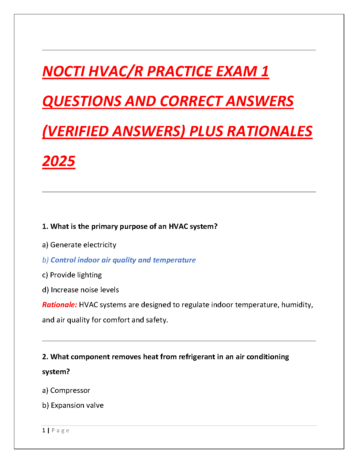 NOCTI HVAC/R Practice Exam 1 2025: Questions and Verified Answers with Rationales