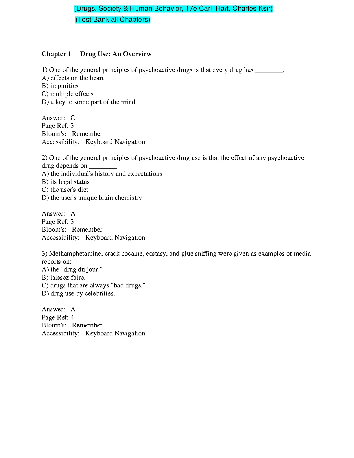 Test Bank For Drugs, Society & Human Behavior, 17th Rdition by Carl Hart, Charles Ksir