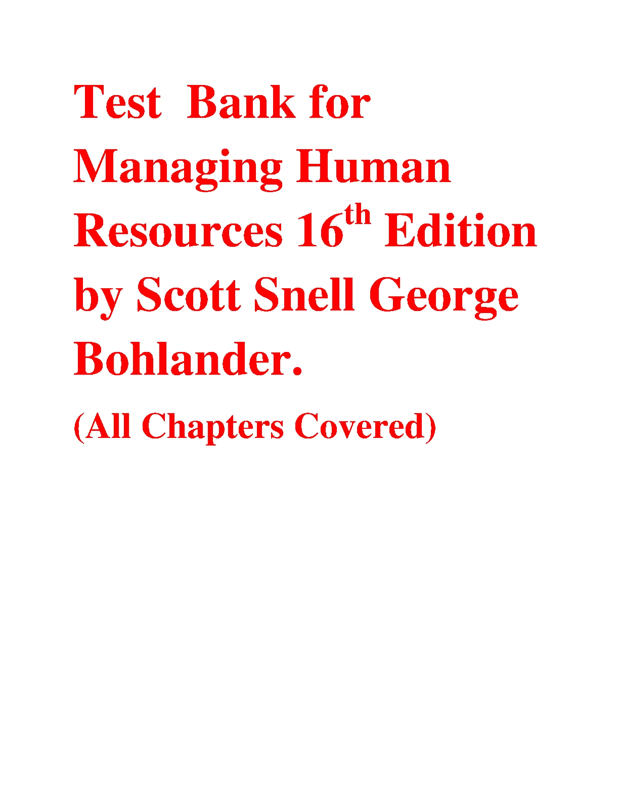 Test Bank for Managing Human Resources 16th Edition by Scott Snell George Bohlander. (All Chapters Covered). DOWNLOAD on www.hackedexams.com INSTANTLY.