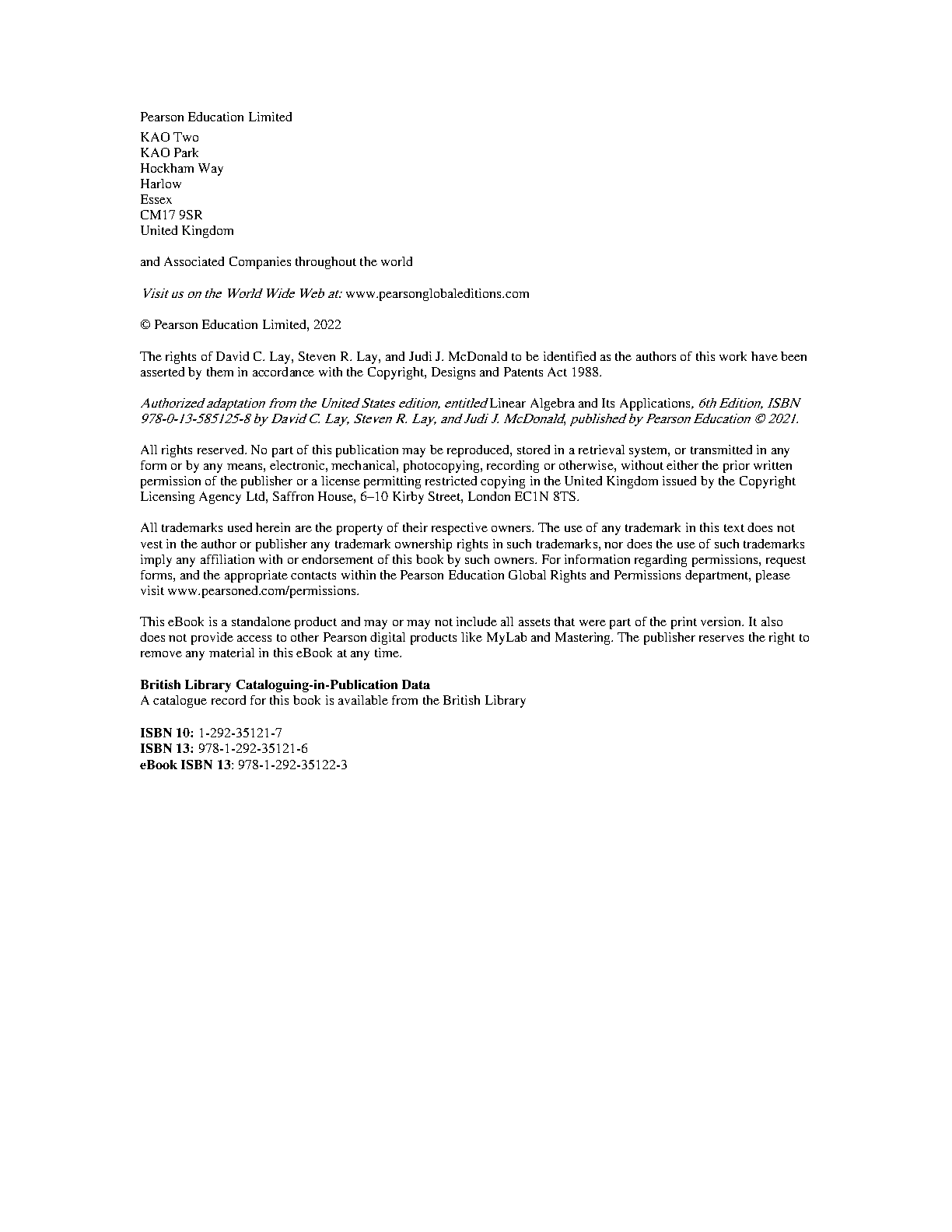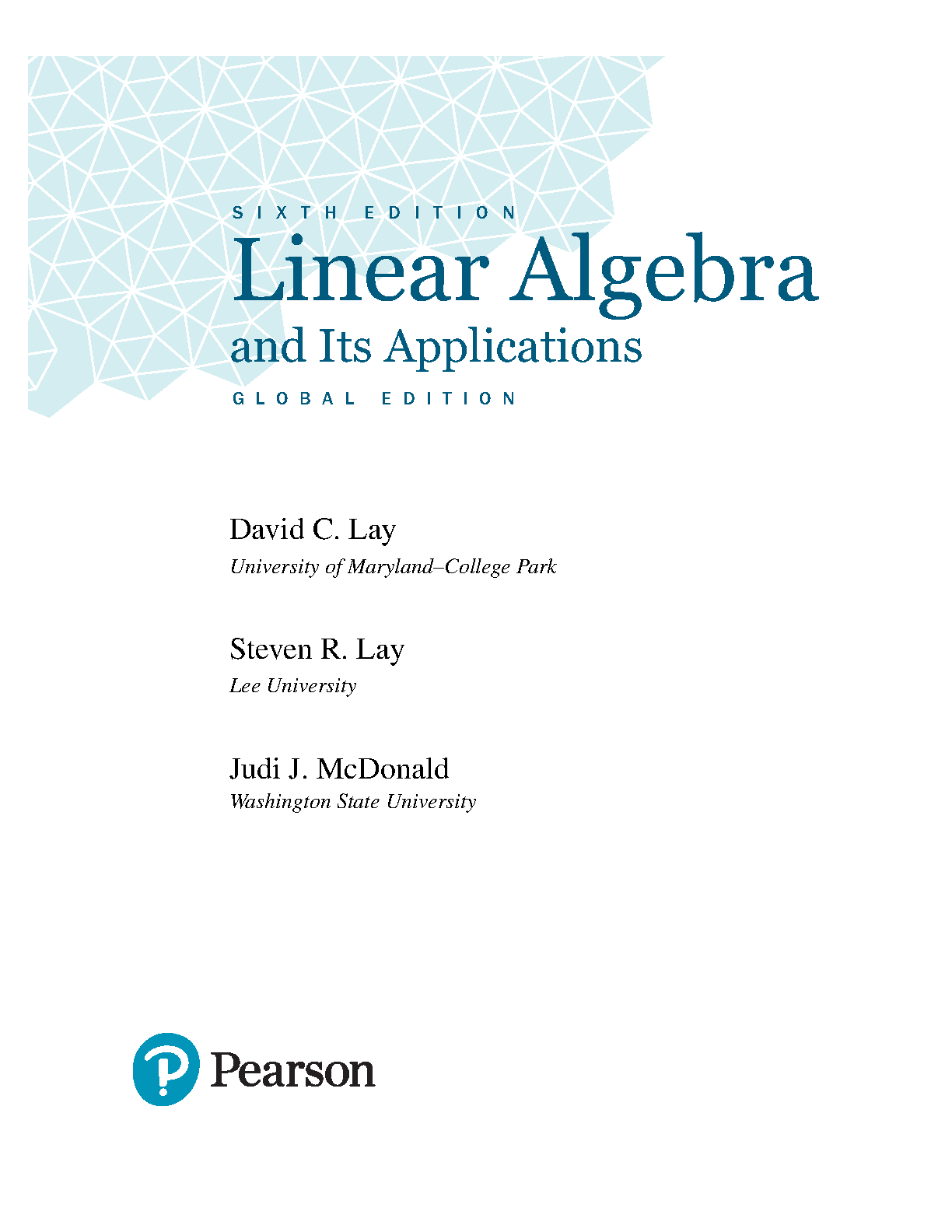 Unlock your potential with the Sixth Edition of 'Linear Algebra and Its Applications' by David C. Lay, Steven R. Lay, and Judi J. McDonald. This comprehensive resource is meticulously crafted to equip students for the 2025/2026 academic year, providing the foundational knowledge and advanced insights needed to excel in exams and avoid resits. Dive into clear explanations, practical examples, and problem-solving strategies that will solidify your understanding and boost your confidence.