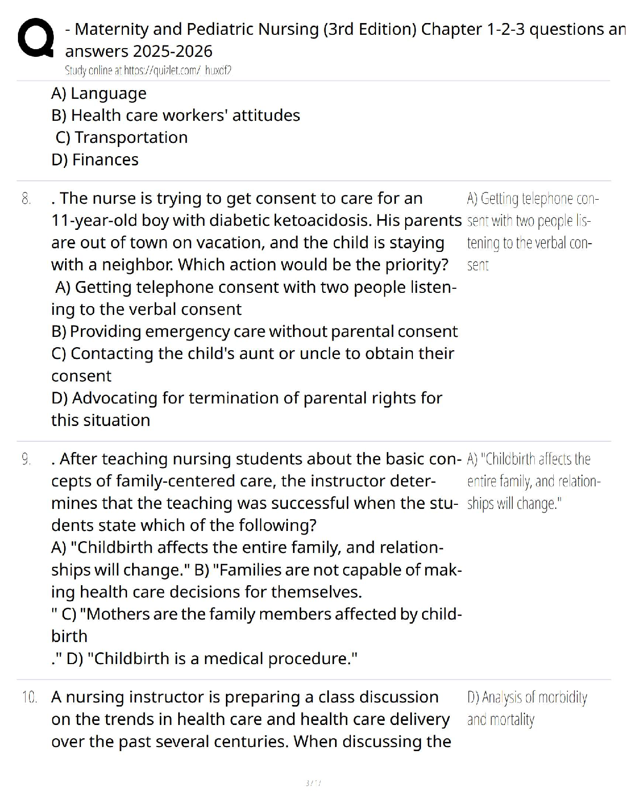 Master maternity and pediatric nursing with this essential question bank, featuring questions from Chapters 1-2-3 of the 3rd Edition. Designed to help nursing students excel in their exams and avoid resits for the 2025-2026 academic year, this resource provides critical practice and in-depth understanding of key concepts.