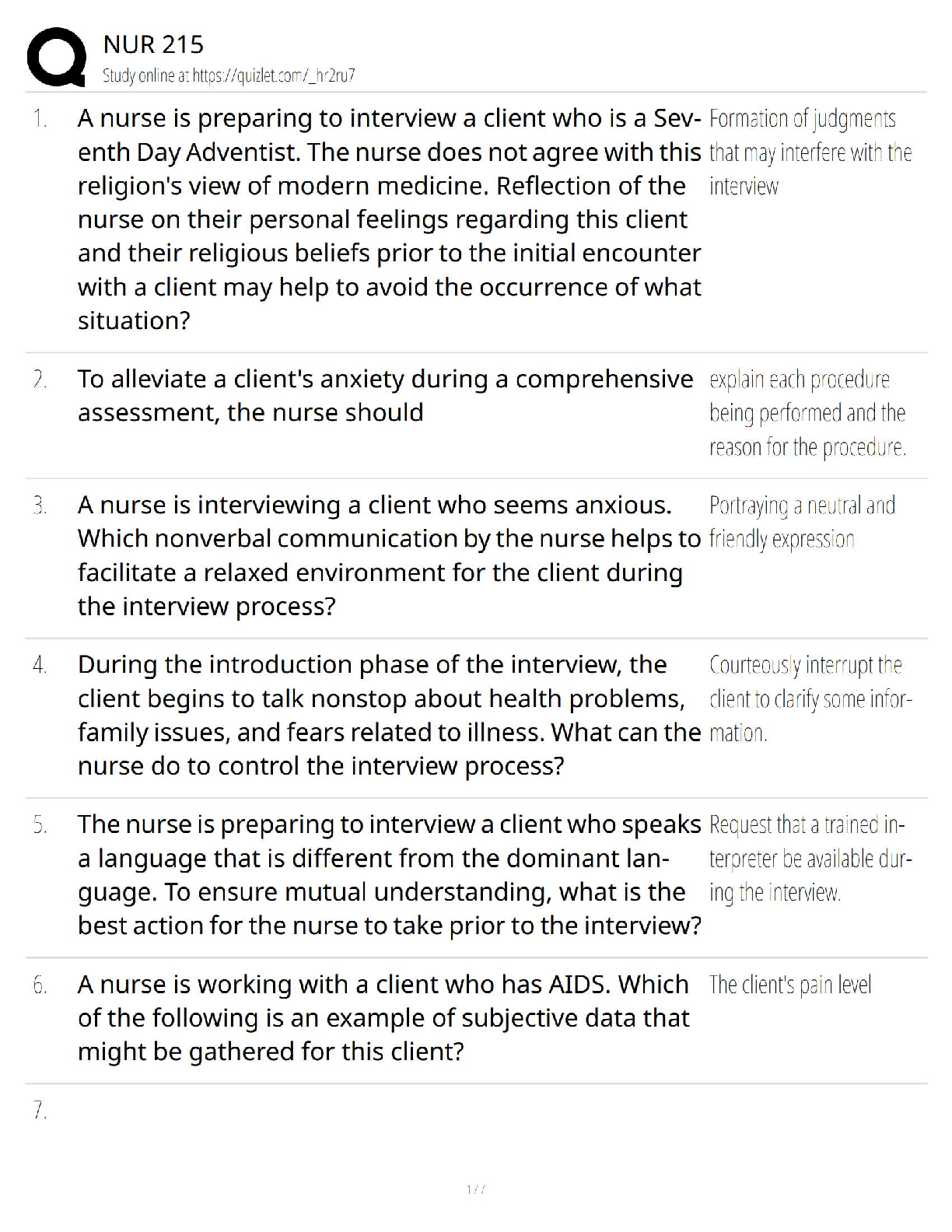 NUR 215: Comprehensive Nursing Interview Skills & Client Assessment - 2025/2026 Academic Year Study Guide