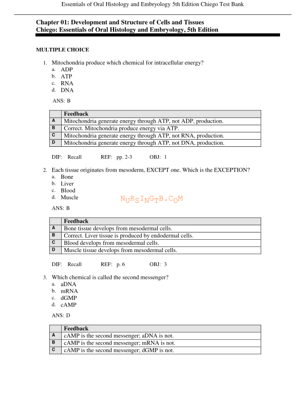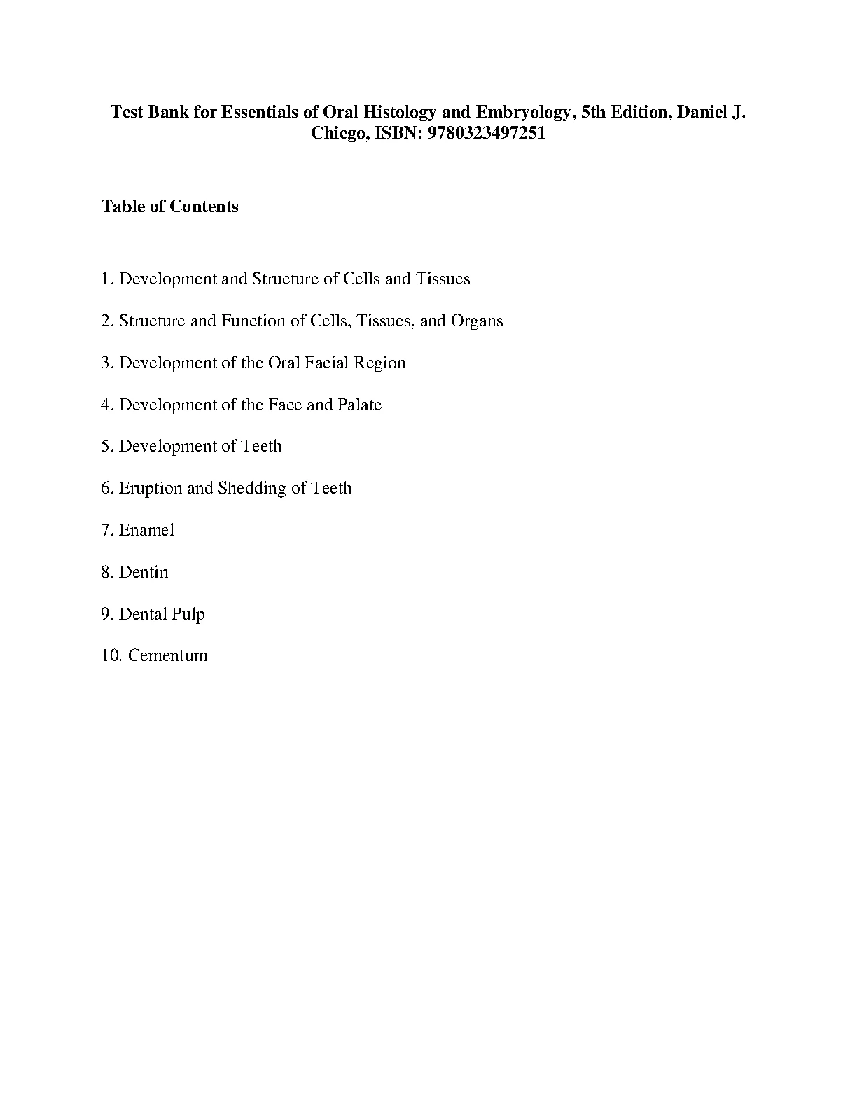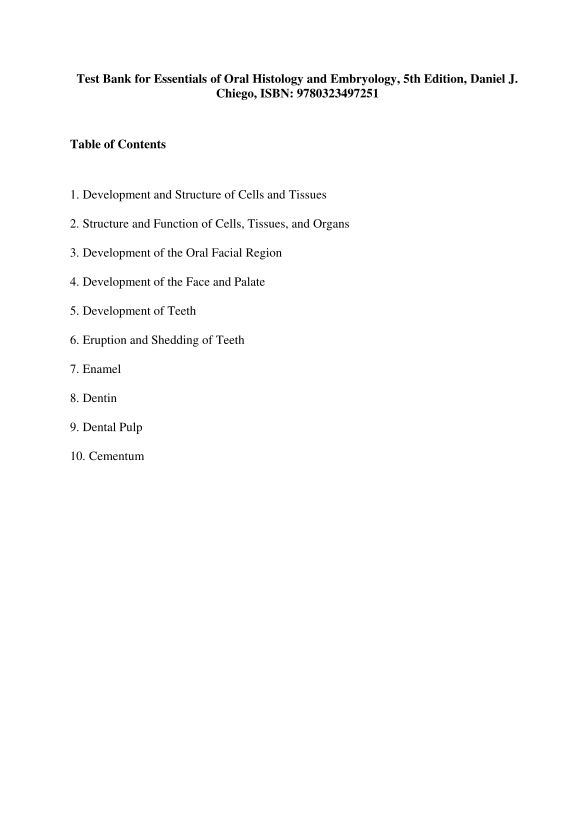 Test Bank for Essentials of Oral Histology and Embryology, 5th Edition, BY Daniel J. Chiego, ISBN: 9780323497251