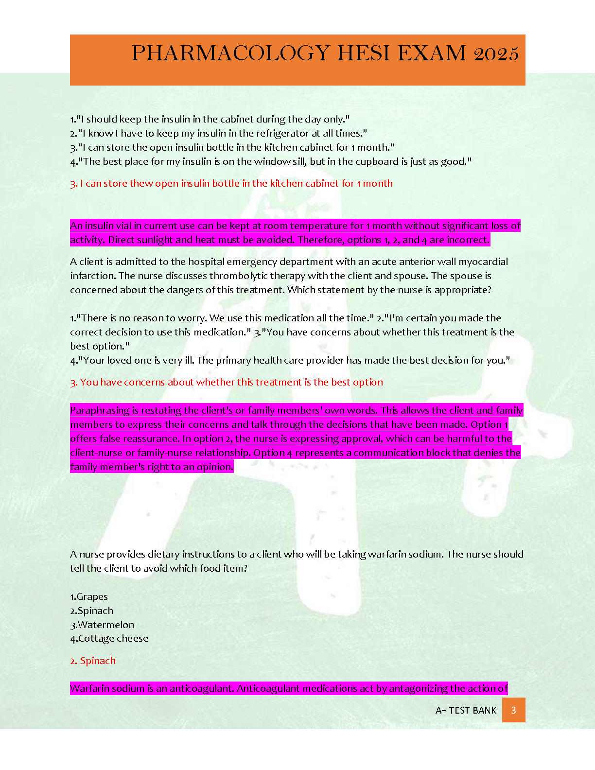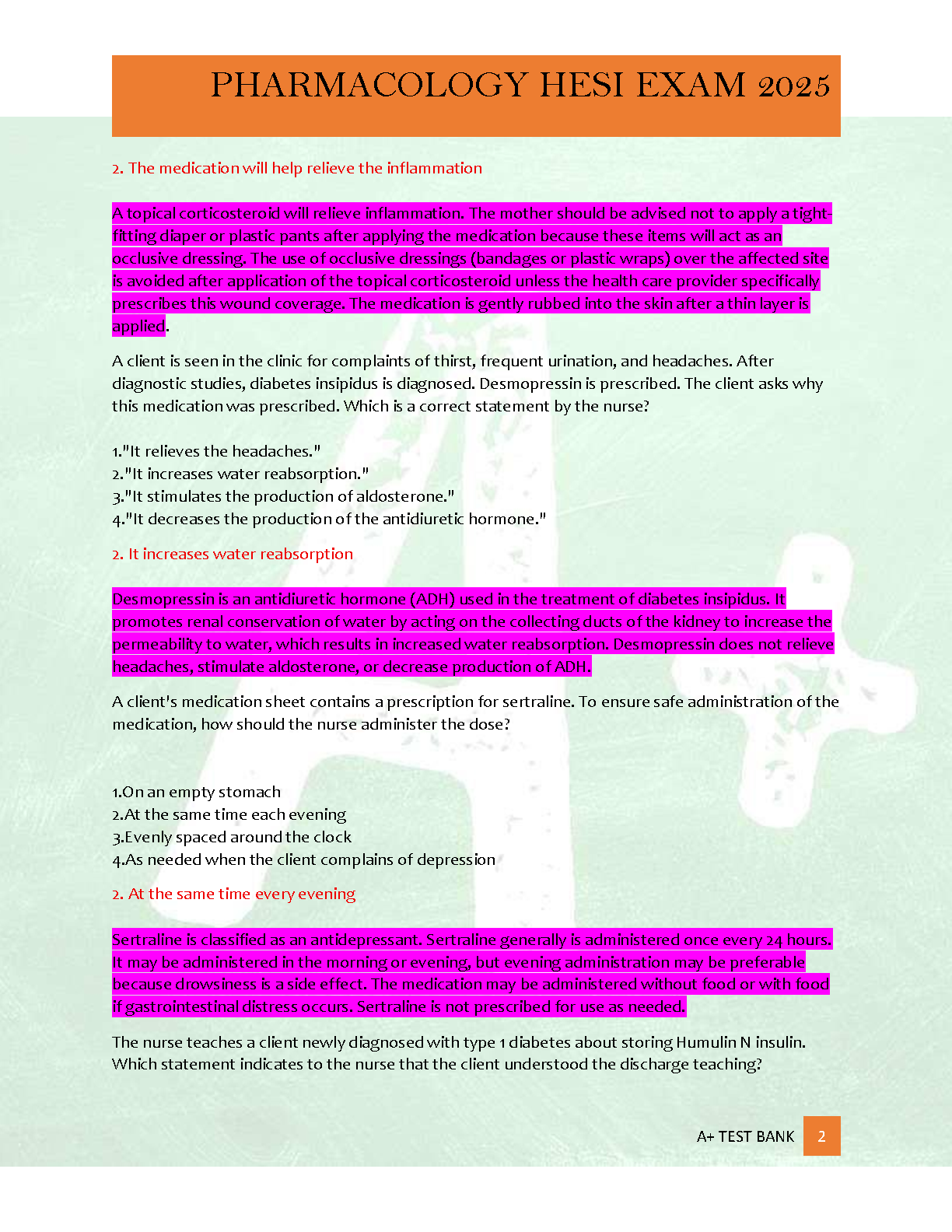 Unlock your full potential for the Pharmacology HESI Exam 2025/2026 with this meticulously compiled A+ Test Bank. This essential resource provides a comprehensive collection of verified questions, each paired with detailed, accurate rationales to deepen your understanding and solidify your knowledge. Designed to help you pass your HESI on the first attempt and avoid costly resits, this latest edition ensures you're fully prepared for the academic year. Master critical pharmacology concepts, clinical application scenarios, and patient safety, all presented in a format that mirrors the actual exam experience.