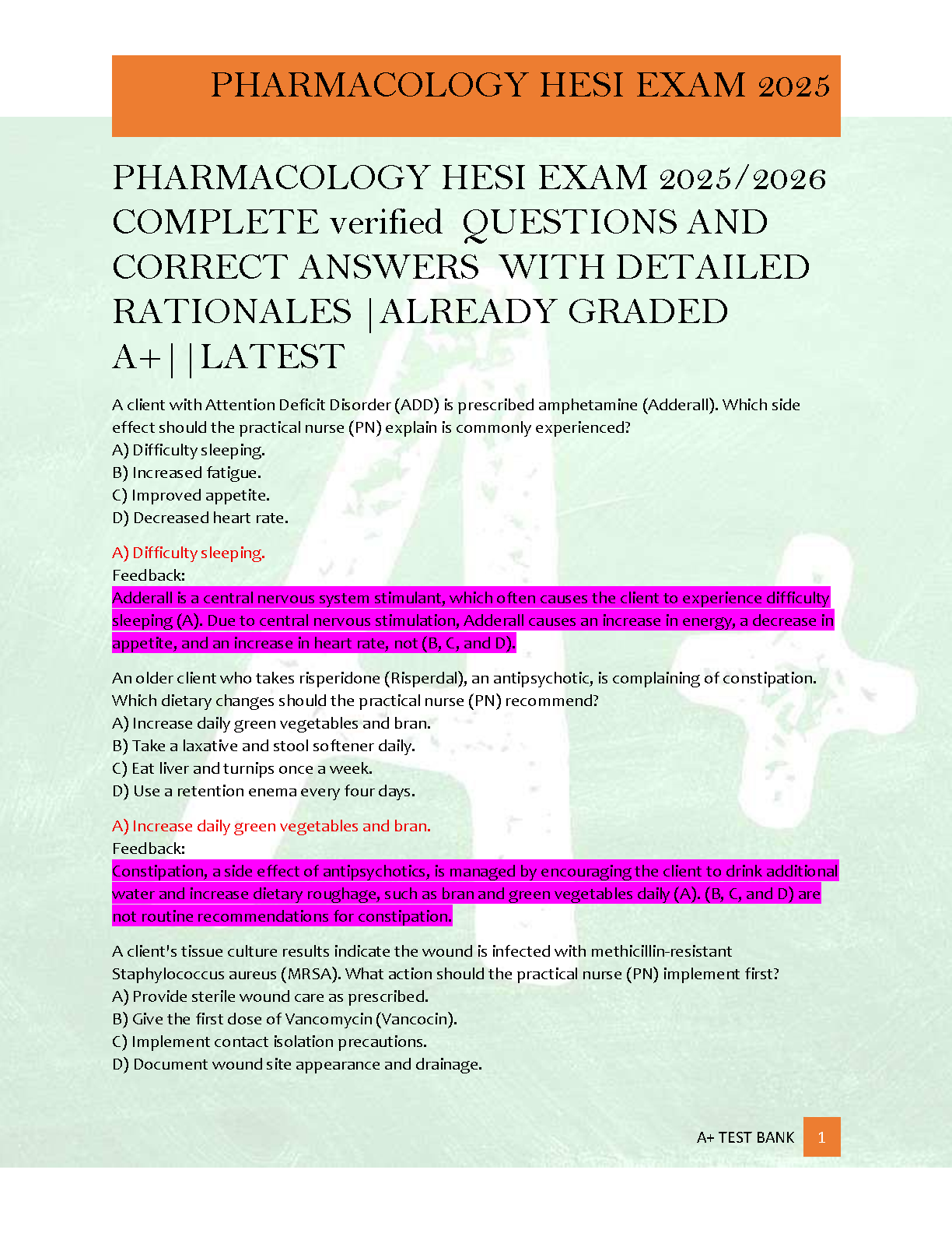Unlock your potential to ace the HESI Pharmacology Exam for the 2025/2026 academic year! This meticulously compiled test bank offers a robust collection of verified practice questions, complete with accurate answers and in-depth, detailed rationales. Designed to solidify your understanding of essential pharmacological concepts, this resource is graded A+ to ensure you're studying the most effective material. Leverage the latest exam content to prepare thoroughly, avoid costly resits, and confidently pass your HESI Pharmacology exam on your very first attempt. An invaluable tool for nursing students striving for excellence in their HESI assessments.