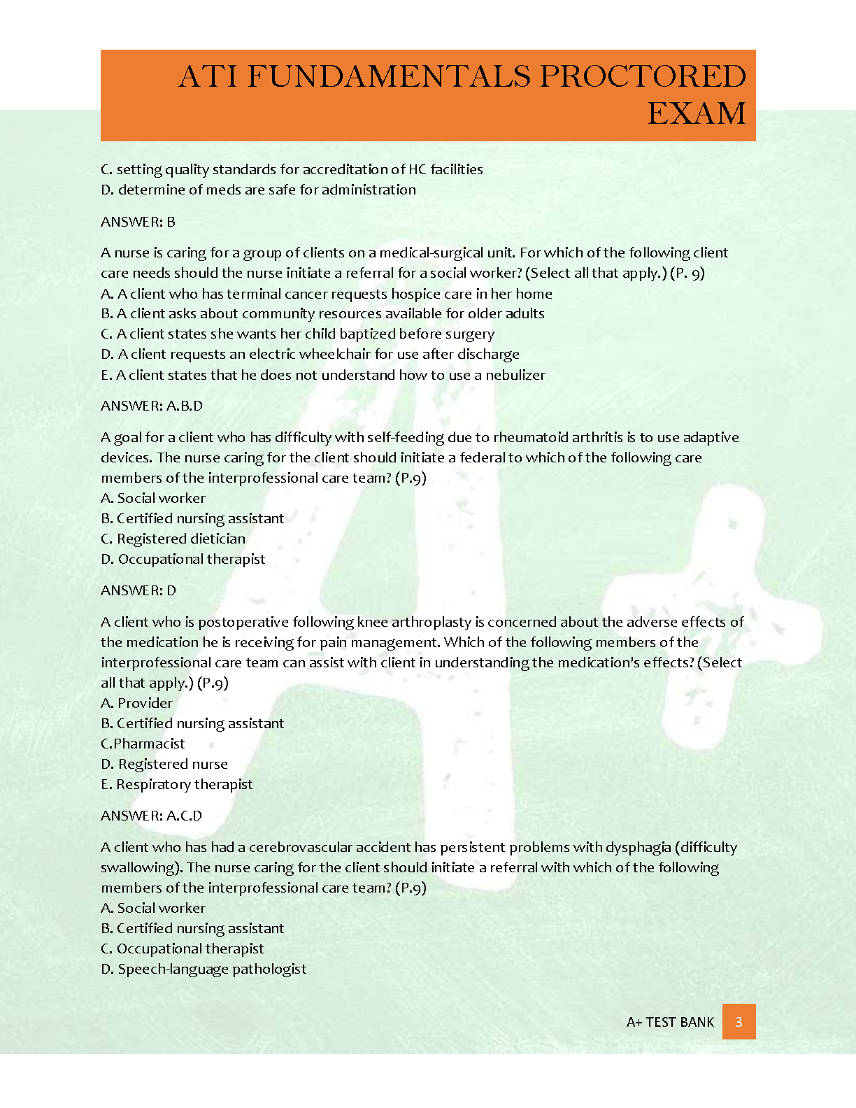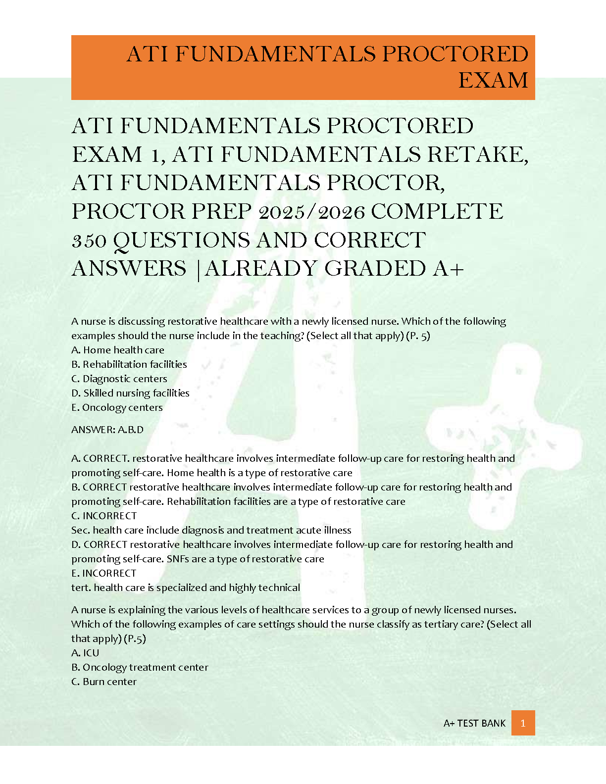 Ace your ATI Fundamentals Proctored Exam for the 2025/2026 academic year with this comprehensive test bank, meticulously developed by ATI Nursing Education. This invaluable resource features over 350 expertly graded questions, complete with detailed correct answers and explanations. Designed specifically for optimal proctor prep, it provides essential practice to ensure you pass your exam on the first attempt, achieve a top grade, and confidently avoid costly resits. Ideal for both initial study and retake preparation, master core nursing fundamentals and elevate your nursing knowledge with this A+ rated study companion.