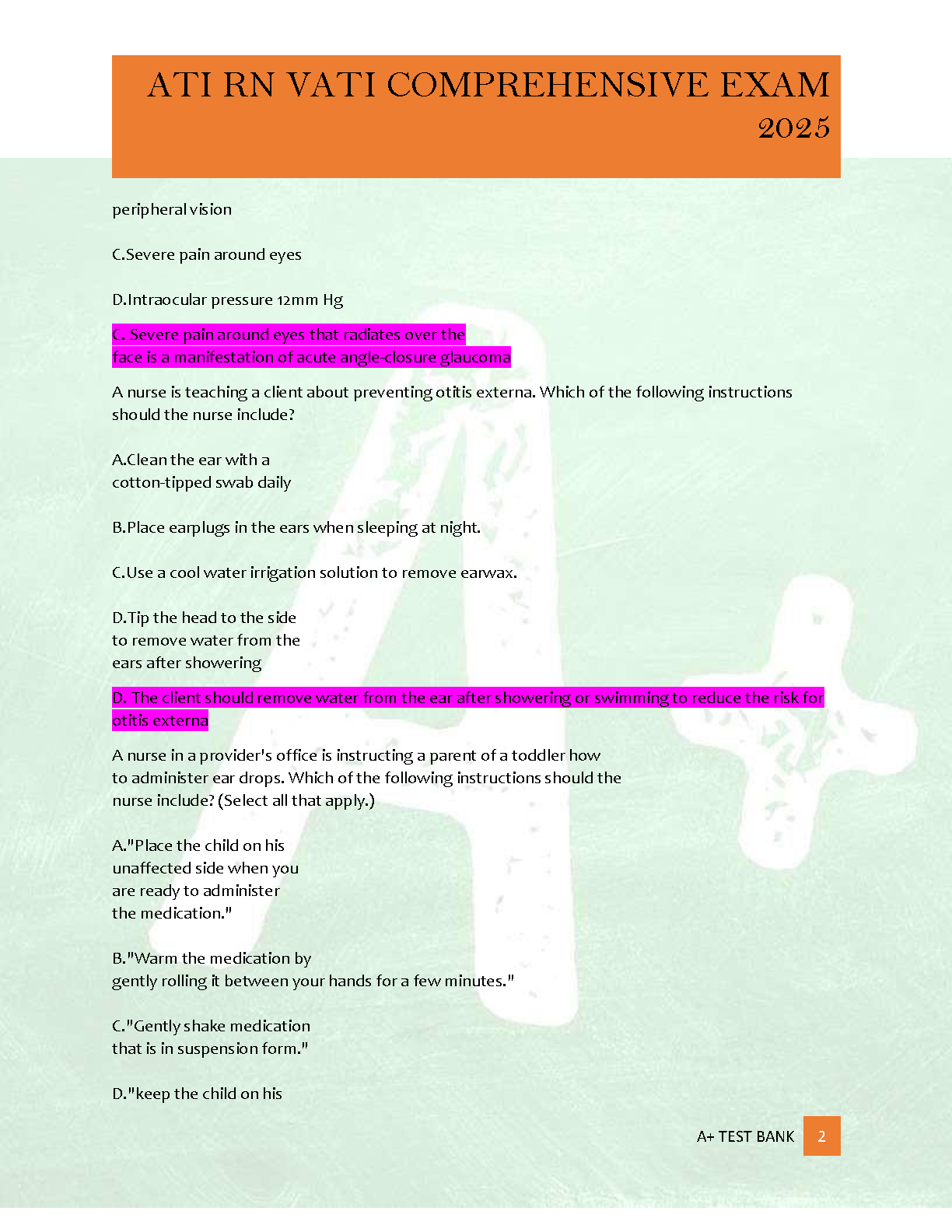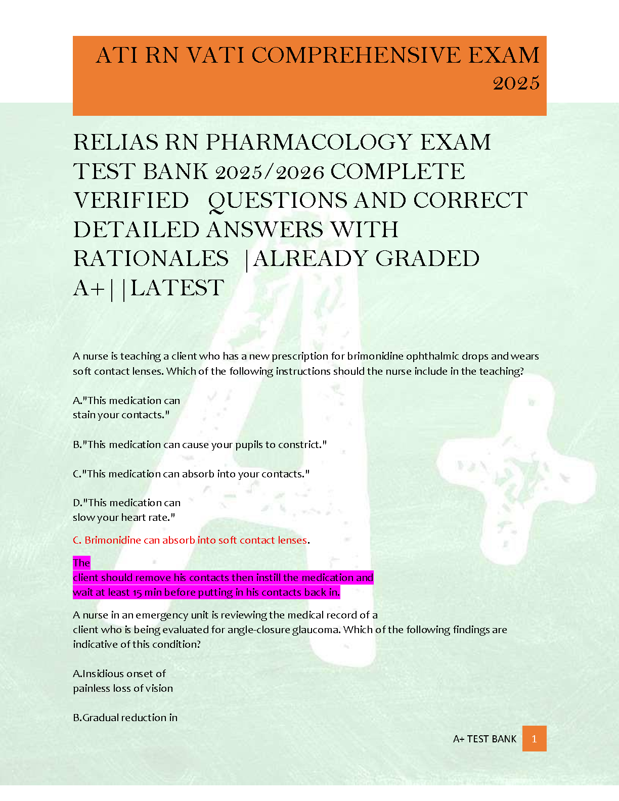 Master your ATI RN VATI Comprehensive Exam 2025 and Relias RN Pharmacology Exam 2025/2026 with this comprehensive test bank. Featuring 100% verified questions, accurate and detailed answers, along with in-depth rationales, this resource is designed to ensure you achieve an A+ and confidently pass your nursing exams on your first try, avoiding costly resits. Stay ahead with the latest, already graded content crafted to bolster your understanding and critical thinking skills. Ideal for nursing students aiming for top scores and guaranteed success.