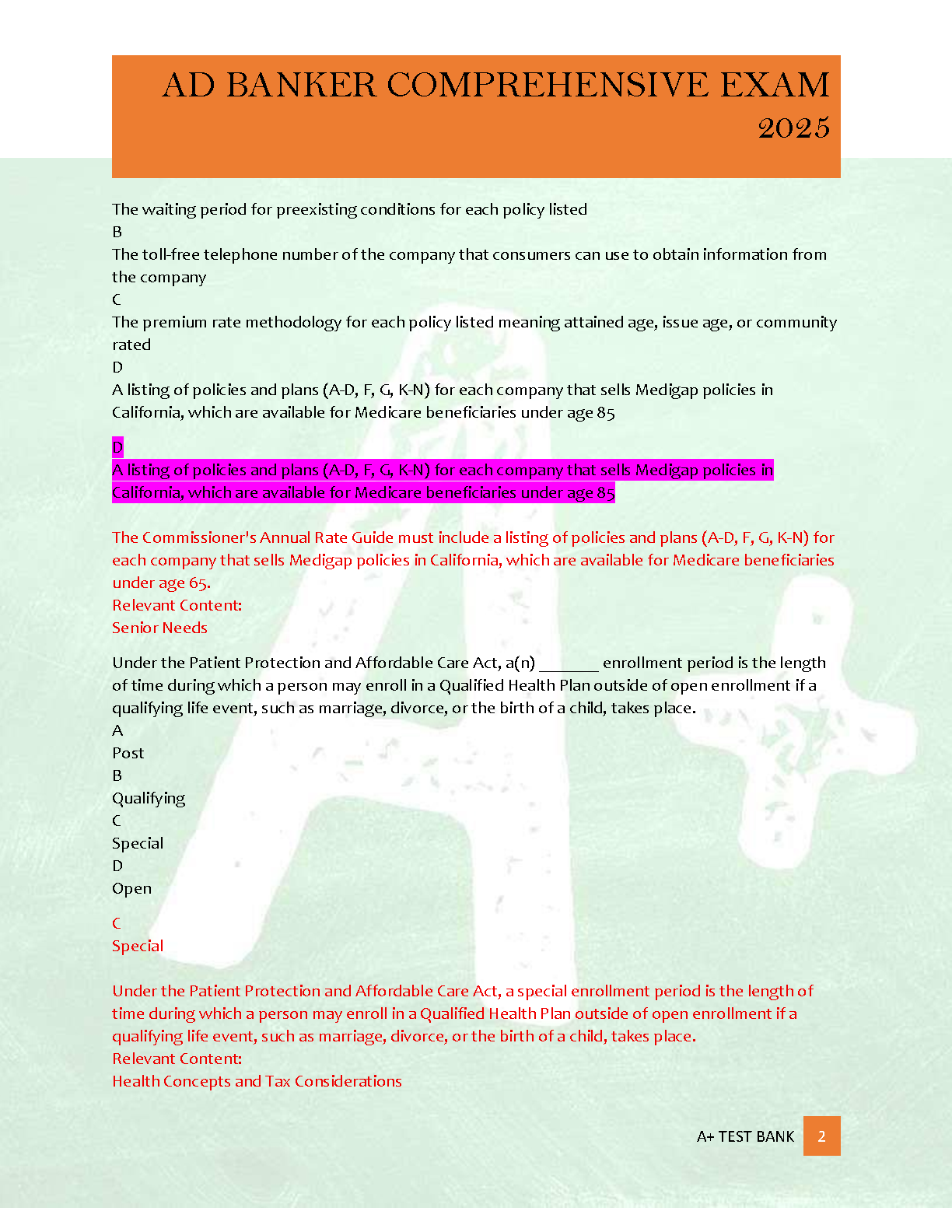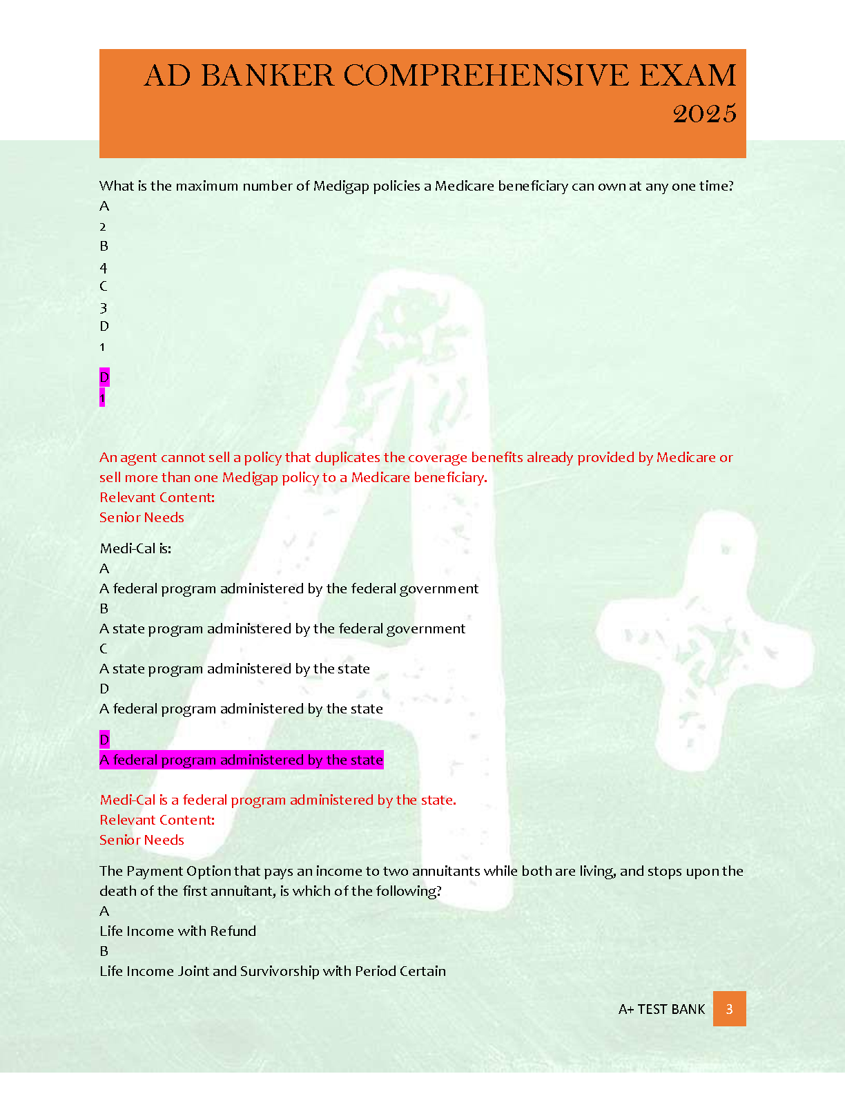 Conquer your AD BANKER Comprehensive Exam for the 2025/2026 academic year with this brand new, A+ graded test bank. This invaluable resource provides a complete set of verified questions and correct answers, meticulously compiled to ensure you're fully prepared to pass your exam successfully on your very first attempt, saving you from costly resits. Elevate your study strategy and master essential insurance and financial concepts with this cutting-edge exam preparation tool.