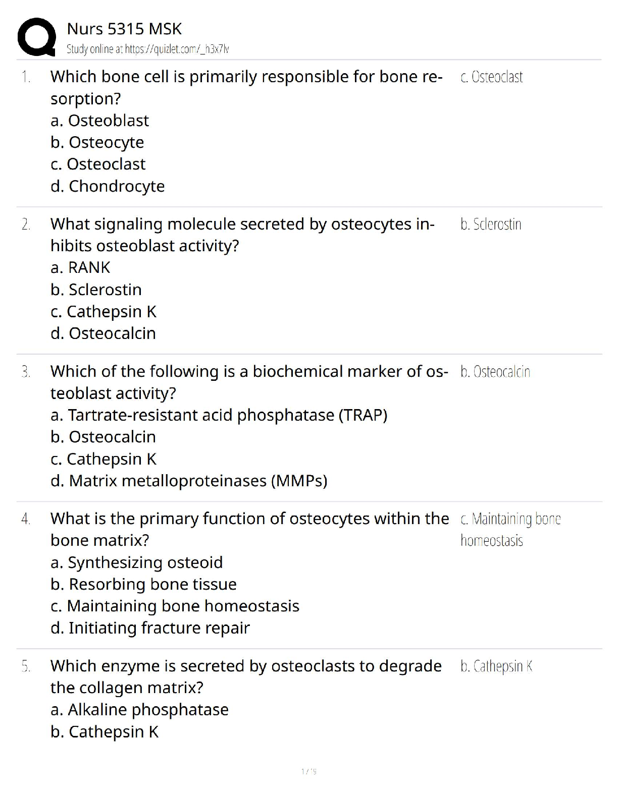 Master the Musculoskeletal System with this essential quiz from Nurs 5315 MSK. Designed to reinforce key concepts and prepare students for first-attempt success, this resource covers bone cell functions, signaling molecules, biochemical markers, and more. Ace your exams and avoid resits with targeted practice.