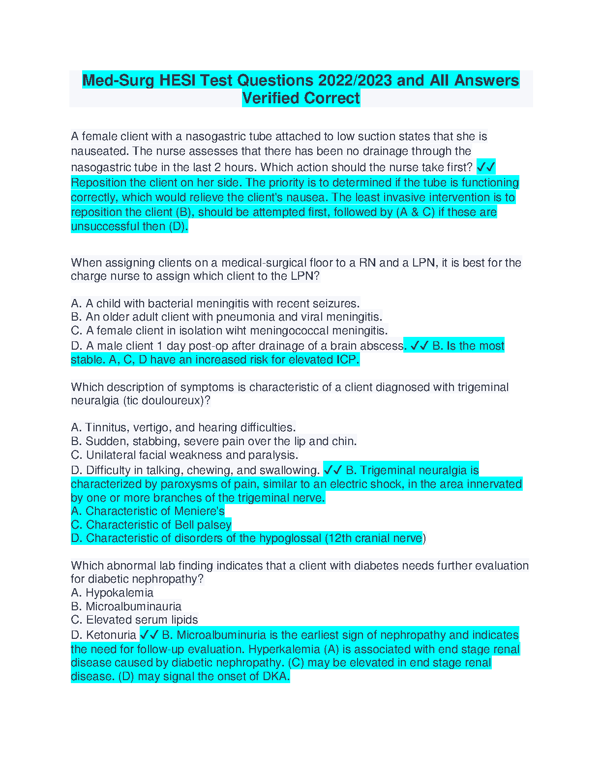 Med-Surg HESI Test Questions 2022/2023 with Verified Answers: Your Guide to First-Attempt Success