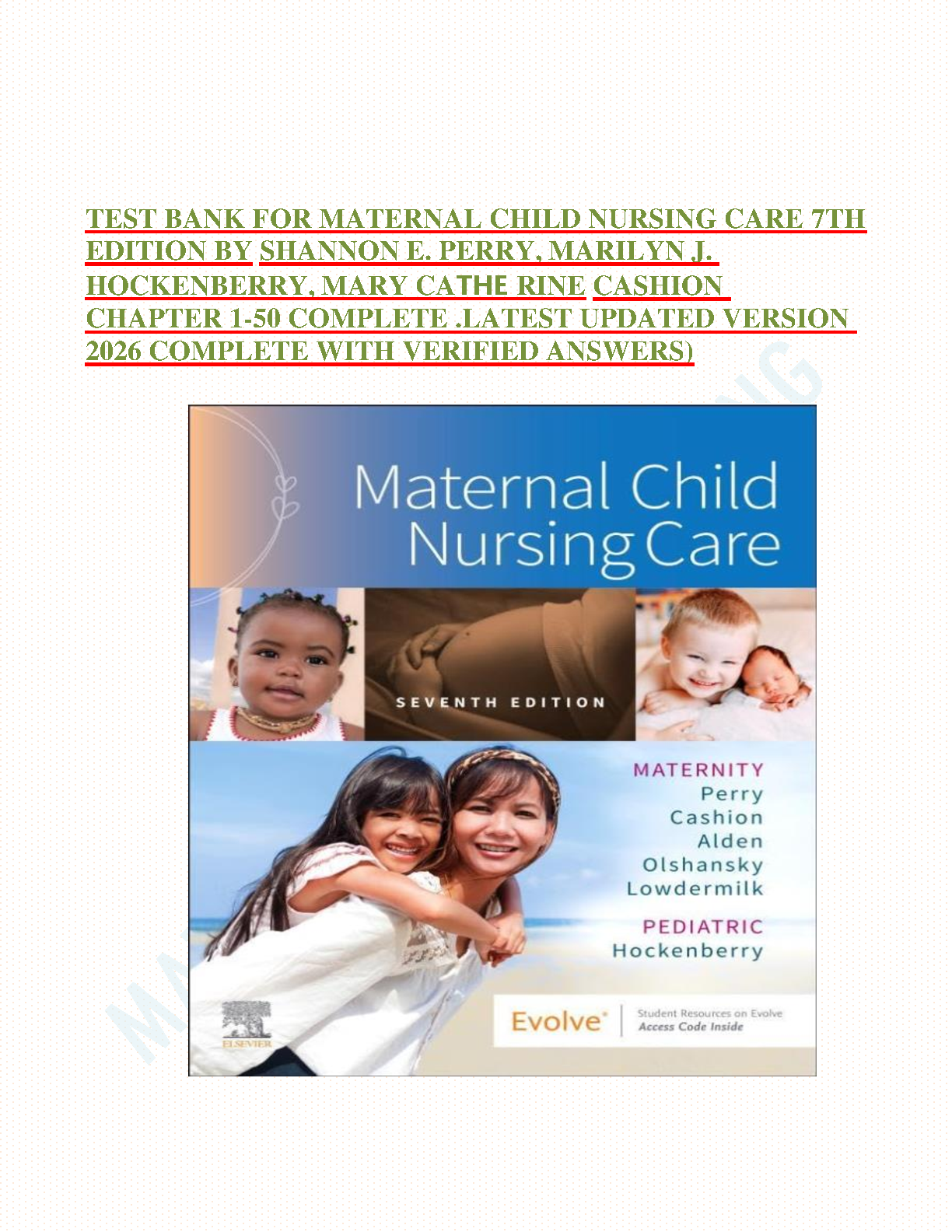 Maternal Child Nursing Care 7th Edition Test Bank by Perry, Hockenberry, Lowdermilk, Cashion, Alden, Wilson, Olshansky – Chapters 1-50 Verified Answers (2025/2026 Exam Ready)