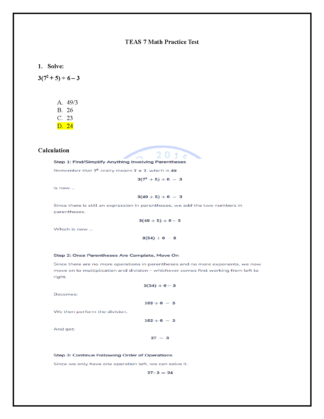 TEAS 7 Math Practice Test: Mastering Order of Operations for the 2025/2026 Academic Year