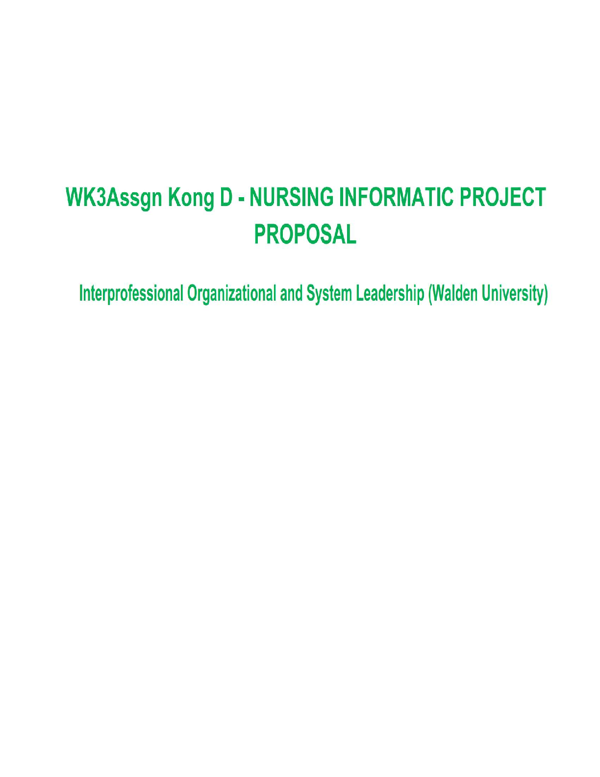 Unlock your full potential in the Walden University Interprofessional Organizational and System Leadership course with this essential Nursing Informatics Project Proposal sample. Designed for the 2025/2026 academic year, this resource offers a comprehensive example to guide students in crafting impactful proposals, ensuring you pass your nursing exams on the first attempt and avoid costly resits. Master the critical concepts of nursing informatics and leadership with this invaluable study aid.