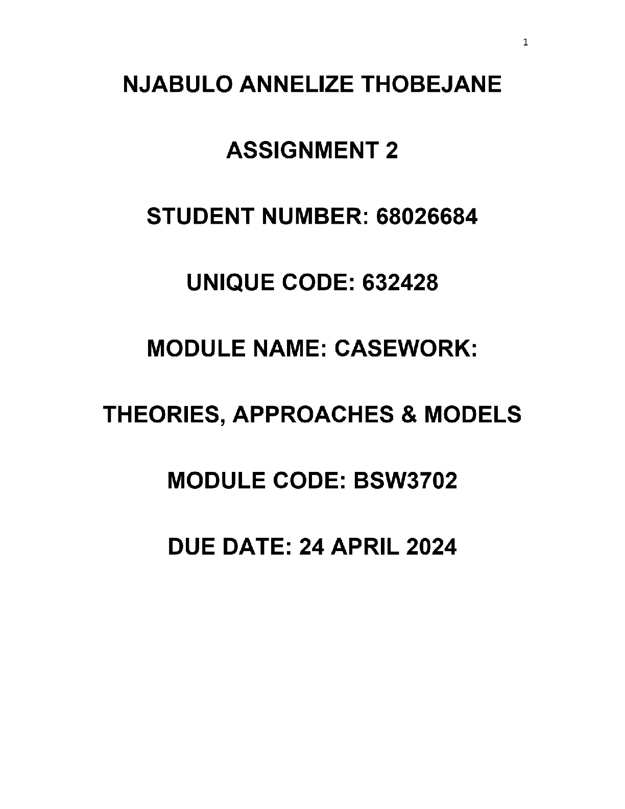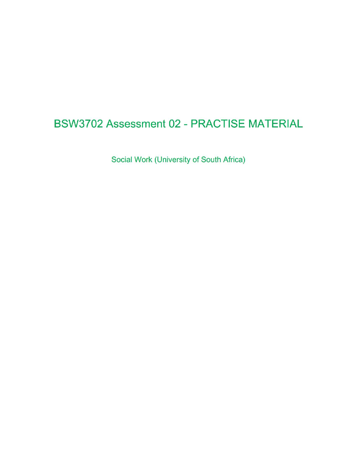 BSW3702 Social Work Assessment 02 Practice Material - University of South Africa (UNISA) Test Bank