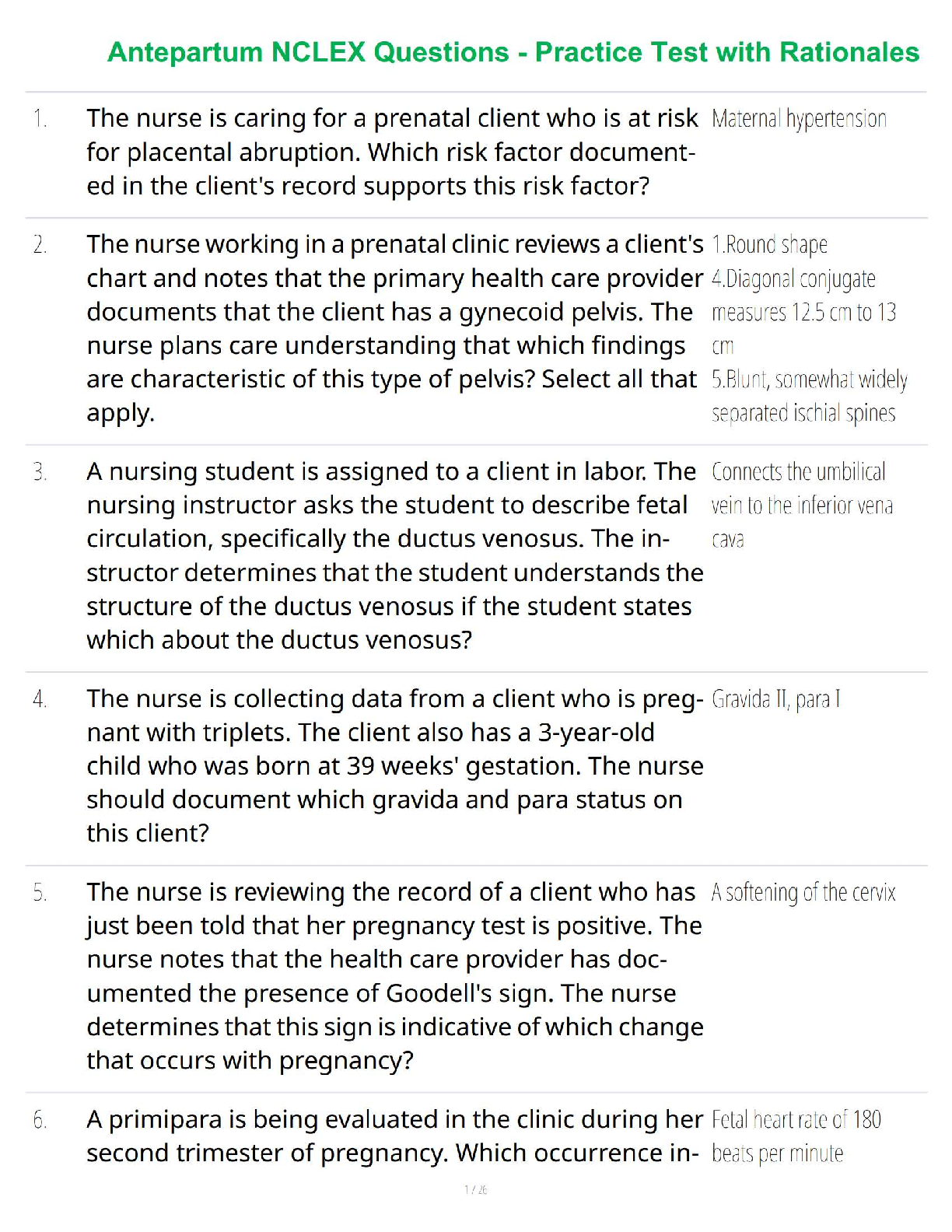Sharpen your NCLEX antepartum knowledge with this comprehensive practice test, featuring detailed rationales. Designed to help nursing students excel in their exams and prevent resits, this resource covers critical concepts for the upcoming 2025/2026 academic year. Master essential antepartum care and ensure first-time success.