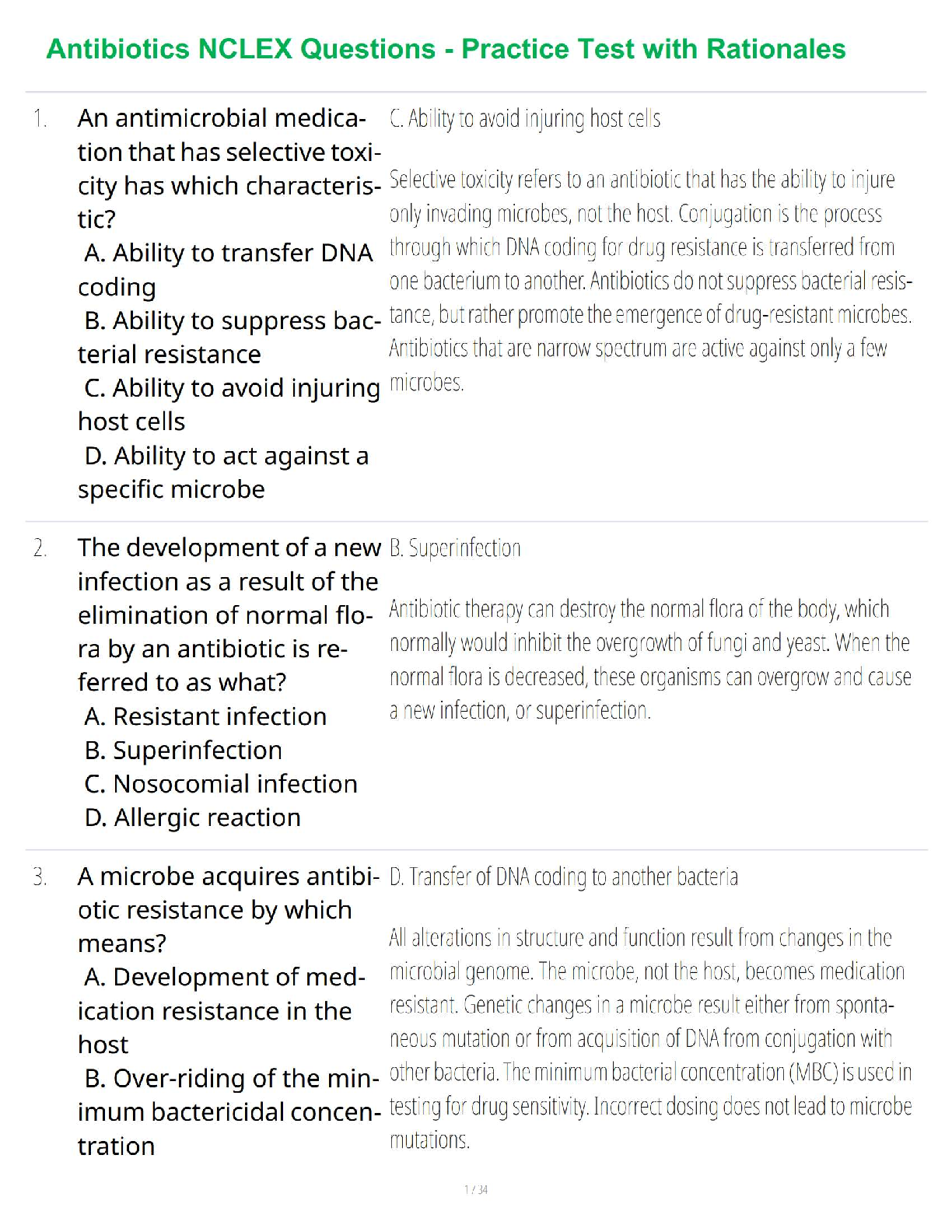 Ace your NCLEX exams with this comprehensive practice test on antibiotics, featuring detailed rationales to solidify your understanding. Designed for the 2025/2026 academic year, this resource aims to equip nursing students with the knowledge needed to excel on their first attempt and prevent the need for resits. Covers key topics like selective toxicity, superinfections, and antibiotic resistance.