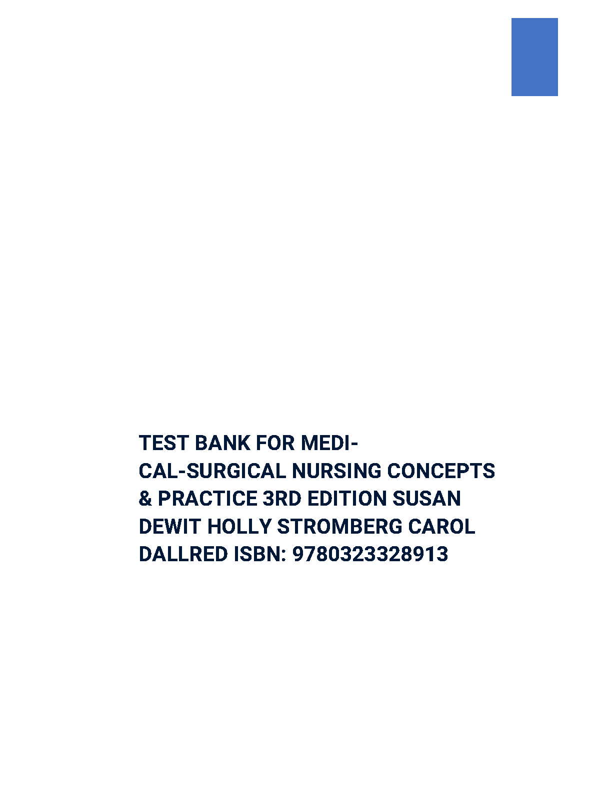 Medical-Surgical Nursing Concepts & Practice, 3rd Edition Test Bank by Susan C. deWit, Holly Stromberg, Carol Dallred