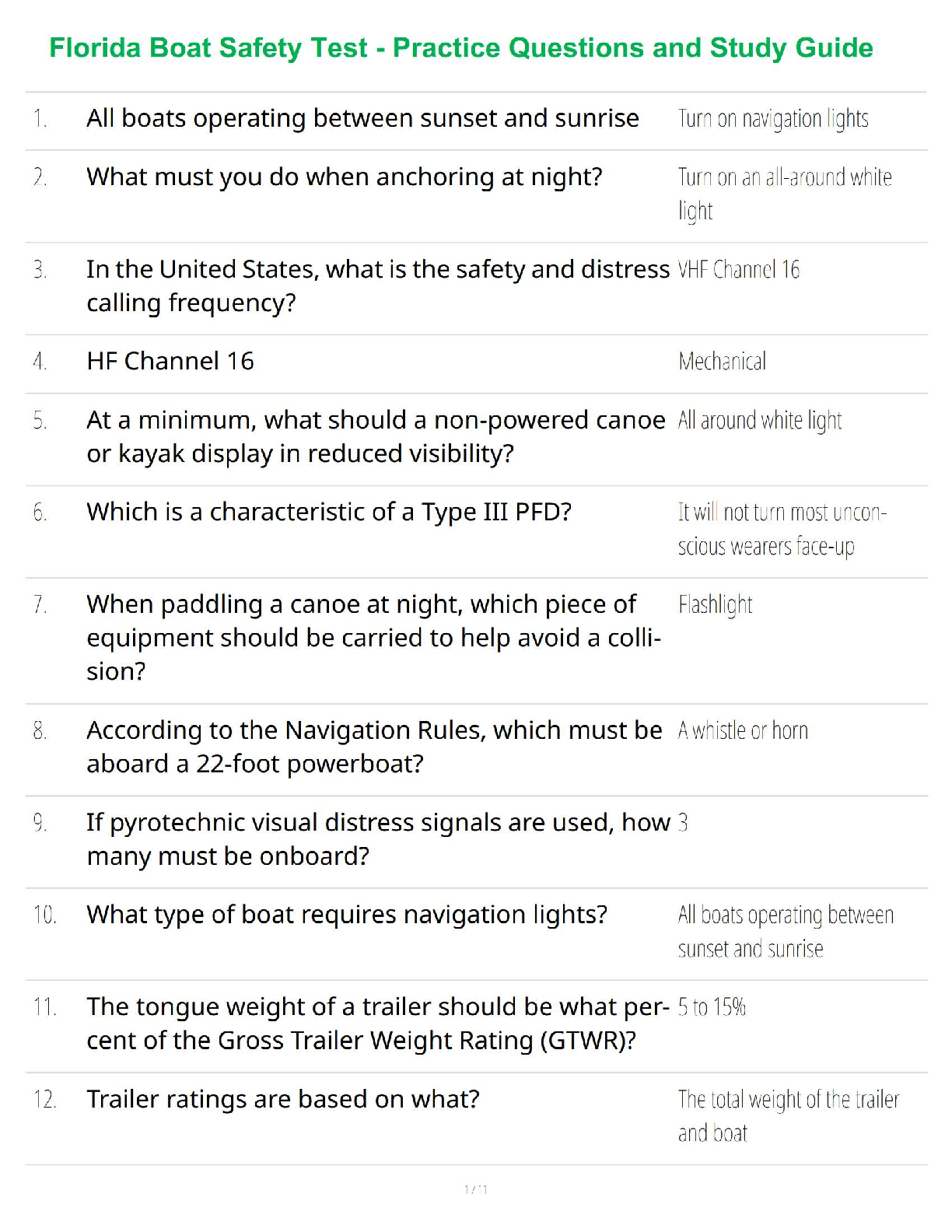Unlock your success on the Florida Boating Safety Education Identification Card exam with this essential 2025/2026 Practice Questions and Study Guide. Developed in line with the official Florida Fish and Wildlife Conservation Commission (FWC) regulations, this resource offers comprehensive practice questions and detailed explanations covering vital topics such as navigation rules, safety equipment, accident reporting, and responsible boating practices. Designed to bolster your understanding and boost your confidence, this guide is your key to mastering the material, ensuring you pass your Florida Boat Safety Test on your very first attempt and avoid costly resits.
