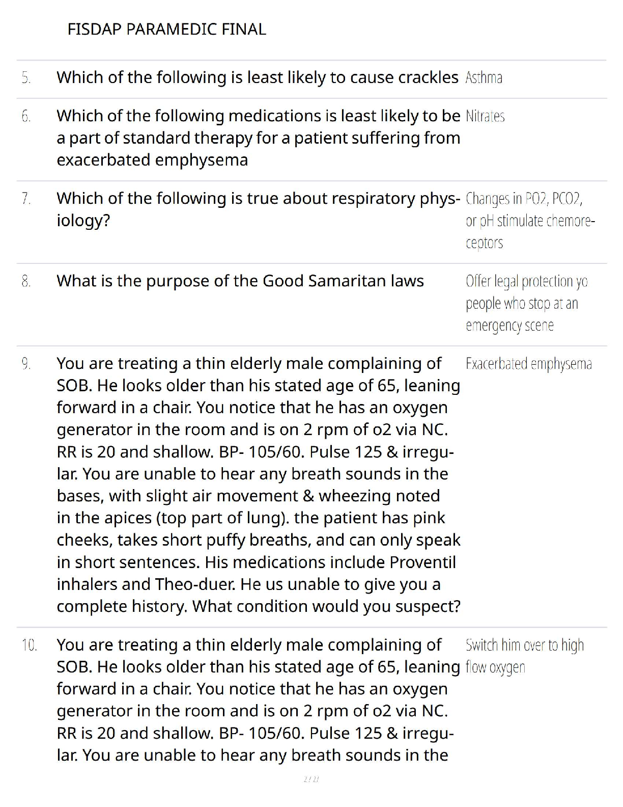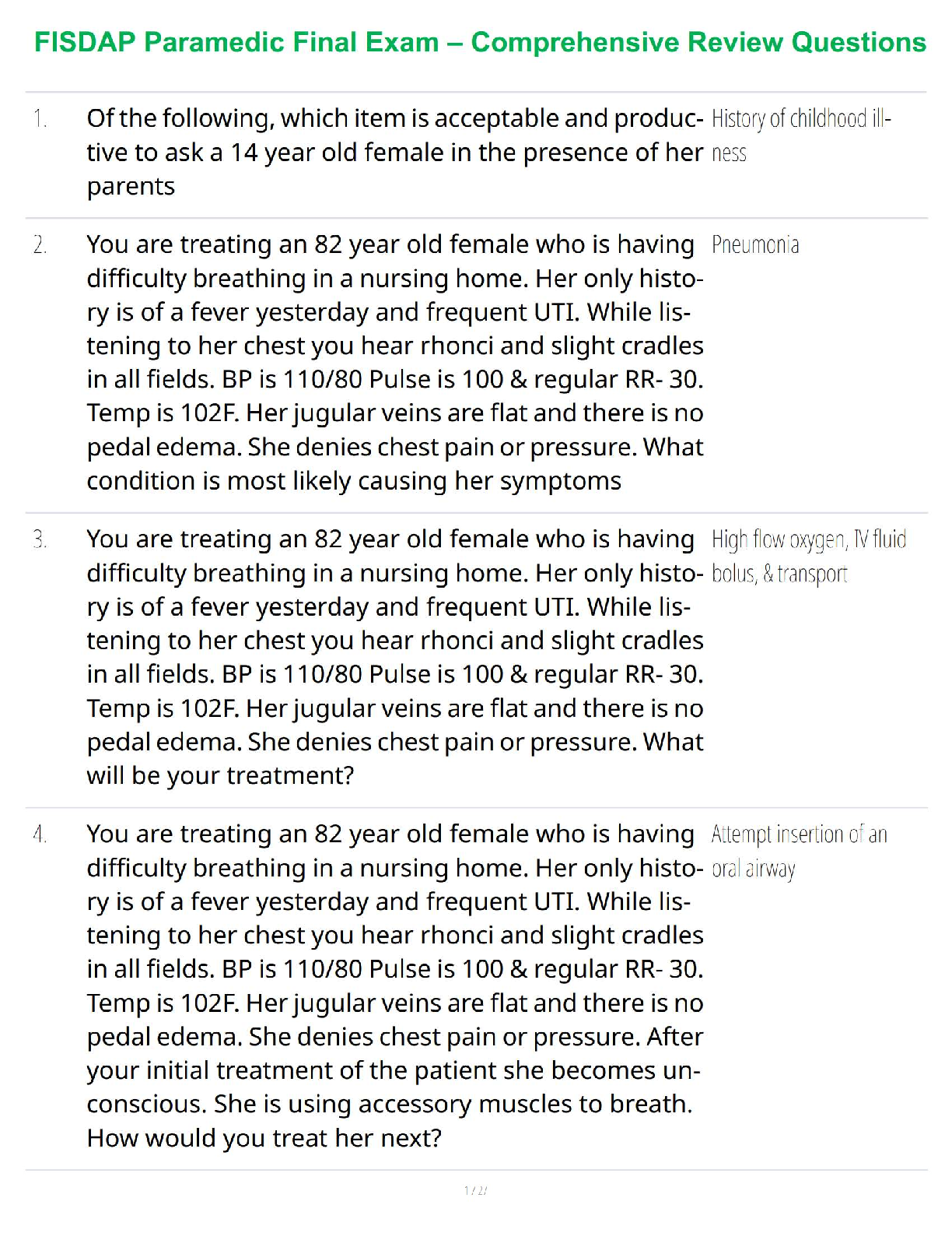 Unlock your potential with this comprehensive test bank for the FISDAP Paramedic Final Exam, meticulously updated for the 2025/2026 academic year. Featuring a wide array of challenging review questions based on real-world scenarios, this resource is designed to thoroughly prepare you for your certification. Master essential concepts, reinforce your knowledge, and confidently pass your exam on the first attempt, saving you time and avoiding resits. Perfect for students aiming for top scores in paramedic studies.