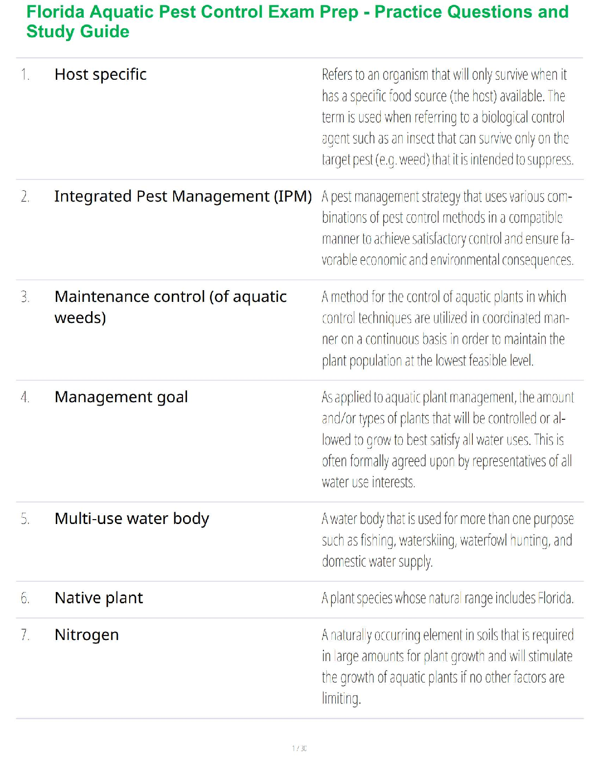 Master the Florida Aquatic Pest Control Exam with this comprehensive study guide and practice questions. Designed for the latest edition and authored by renowned experts K. A. Langeland, R. M. Nettles, B. L. Bunting, G. E. MacDonald, and S. M. Steed, this invaluable resource provides essential definitions, key concepts, and practical insights into integrated pest management (IPM), host specificity, and aquatic plant control. Equip yourself with the knowledge to confidently pass your exam on the first attempt and excel in aquatic pest management practices specific to Florida.