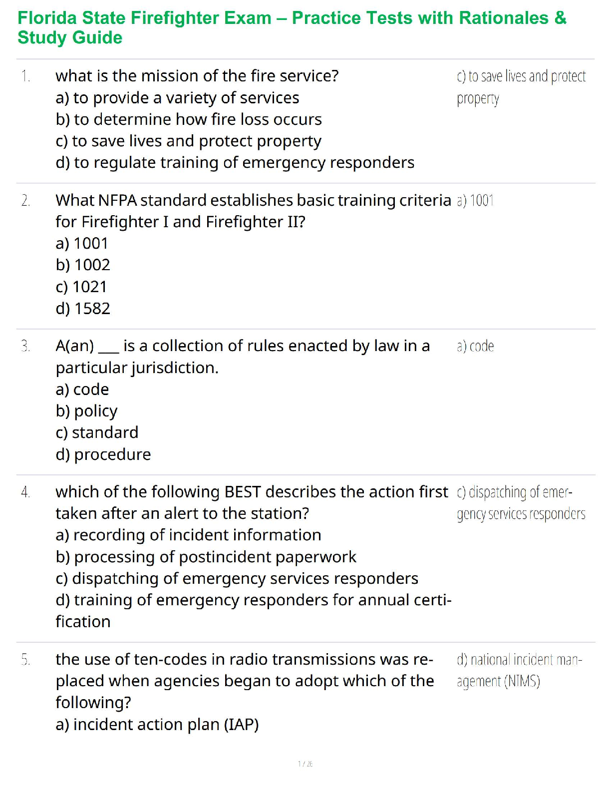 Florida State Firefighter Exam 2025/2026 Test Bank: Elite Practice Questions & Rationales to Guarantee First-Attempt Pass & Avoid Resits