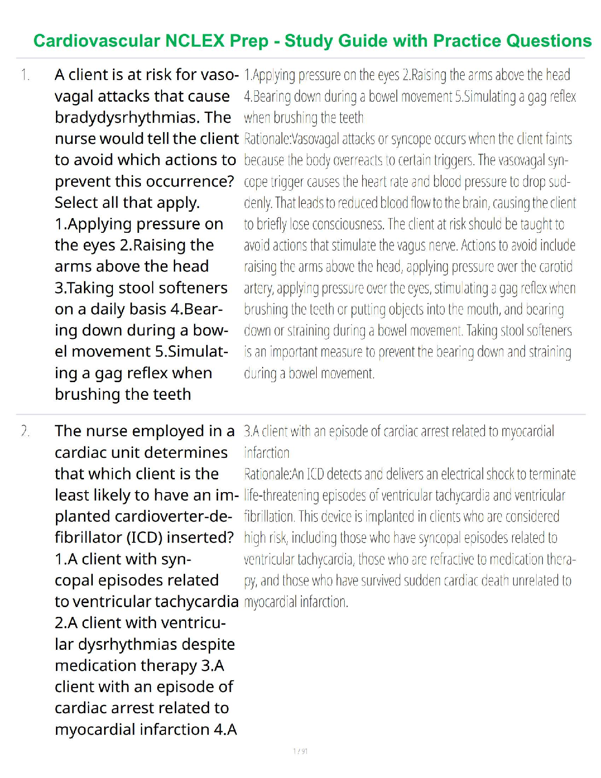 Elevate your NCLEX preparation with this comprehensive Cardiovascular Nursing Study Guide and Practice Question Bank, meticulously updated for the 2025/2026 academic year. This essential resource is designed to help nursing students thoroughly master critical cardiovascular concepts, featuring a rich collection of challenging practice questions paired with detailed rationales for both correct and incorrect answers. Sharpen your clinical reasoning, pinpoint areas for improvement, and build the unwavering confidence needed to successfully pass your NCLEX on the very first try, thus avoiding the stress and cost of resits. An indispensable tool for all aspiring registered nurses specializing in cardiac health.