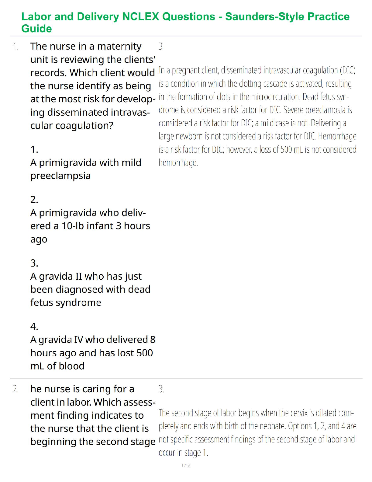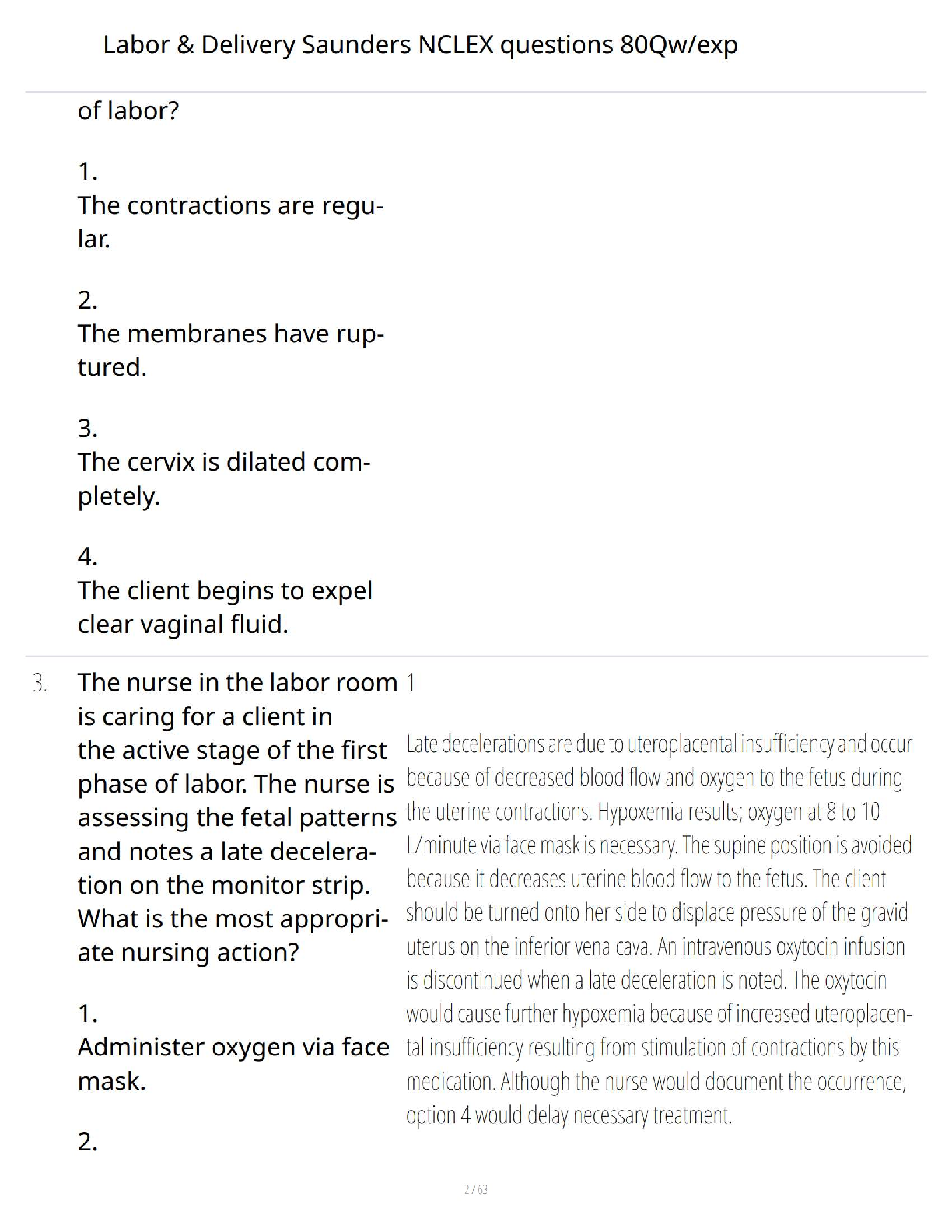 Master challenging Labor and Delivery concepts with this extensive NCLEX-RN practice question set, meticulously crafted in the renowned Saunders-style. Developed from the authoritative 9th Edition works of Linda Anne Silvestri and Angela Silvestri, these essential test bank questions provide detailed rationales for both correct and incorrect answers, ensuring a deep understanding of maternal-newborn nursing. Prepare effectively for your 2025/2026 NCLEX exam, boost your confidence, and secure your nursing license on your very first attempt, eliminating the need for costly resits. Ideal for comprehensive review and targeted practice to ensure you're fully prepared.