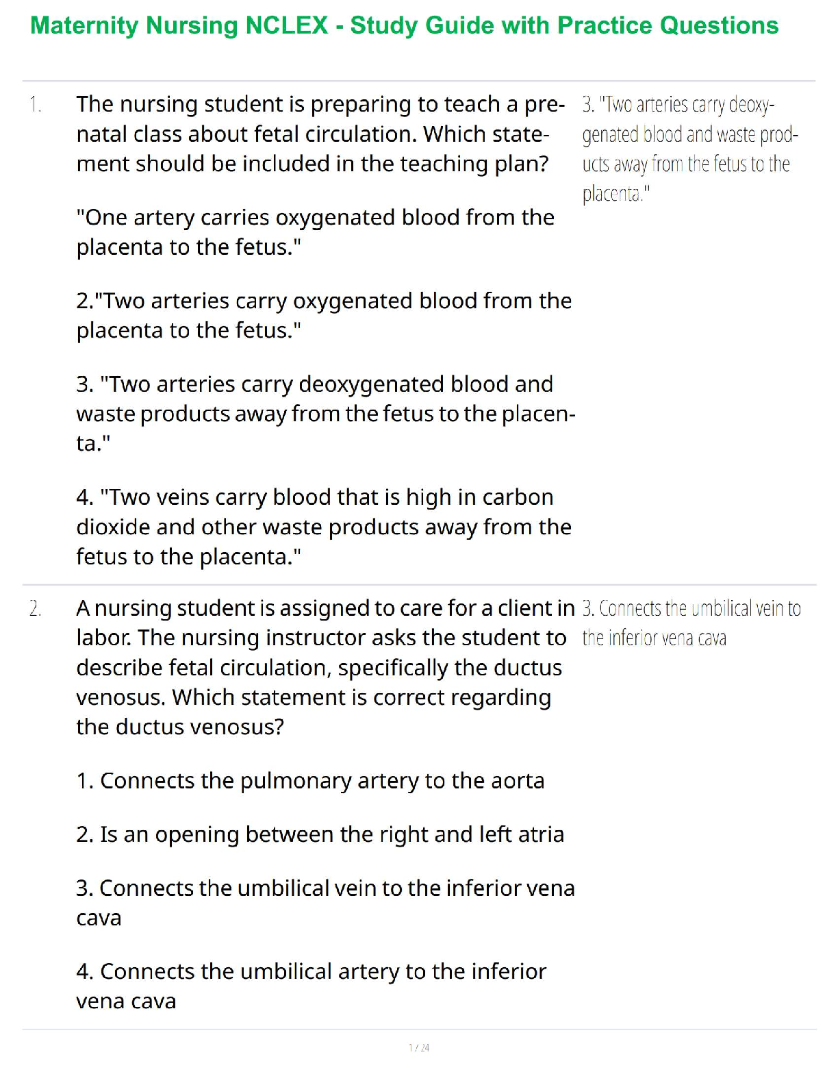 Master Maternity Nursing and ace your NCLEX exam on the first try! This comprehensive study guide, designed for the 2025/2026 academic year, features key concepts, detailed explanations, and practice questions covering fetal circulation and the ductus venosus. Avoid resits and achieve your nursing career goals.